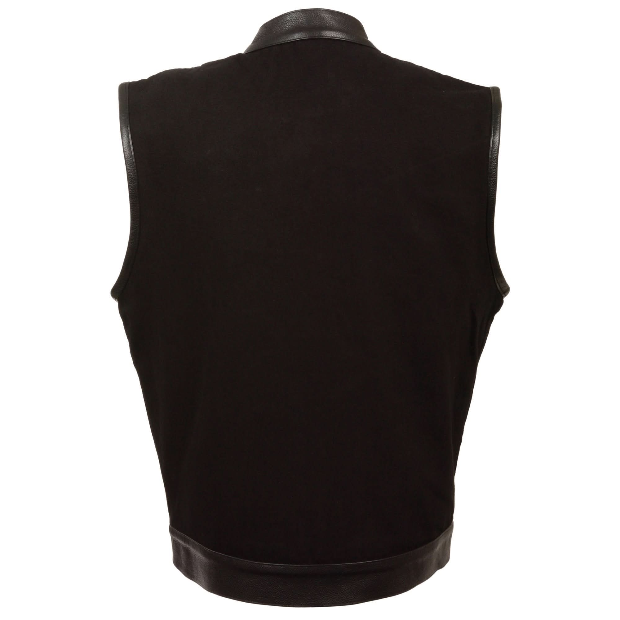 Milwaukee Leather MDM3010 Men's Black Denim Club Style Biker Vest with Leather Trim and Hidden Zipper