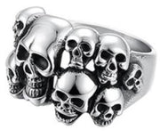 R12 Stainless Steel Multi-Skull Face Biker Ring