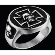 R121 Stainless Steel Iron Cross Skull Biker Ring