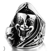 R158 Stainless Steel Joker Face Skull Biker Ring