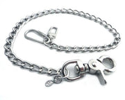 Our Splicer Chrome Wallet Chain has elongated, smooth, welded links. This medium-sized chain has clean styling and looks great at any length!