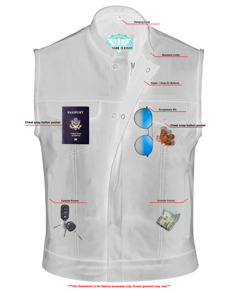 If you're looking for a men's single panel concealment motorcycle vest with a scoop collar, we've got you covered. Our single-panel, scoop neck leather vest is made from soft milled cowhide 1.2 - 1.3mm and is perfect for carrying your firearm. The hidden zipper protects you from rain and wind during your ride.