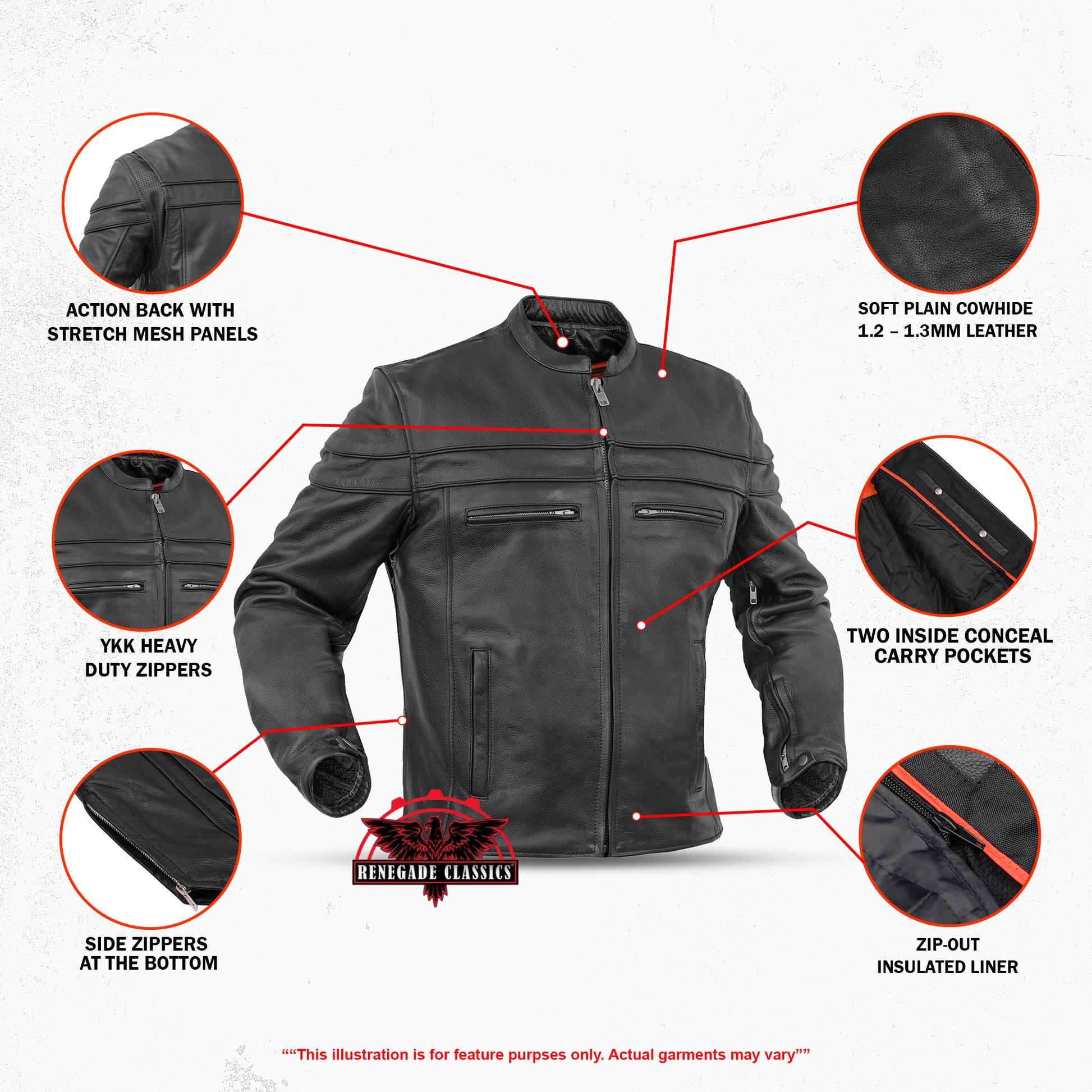 - 2 inside concealed Smart Access Pocket made of special heavy-duty textile with built-in holsters and snap closure.