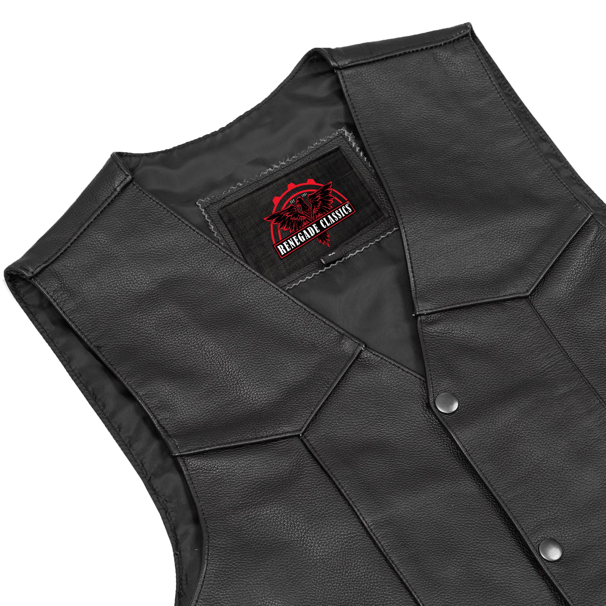 Leather vests are an essential piece of gear for all seasons. Our men's traditional single-back panel concealed carry biker vest is perfect for keeping you safe everywhere you go. You can easily store your guns, phone, and more in a stylish leather vest.