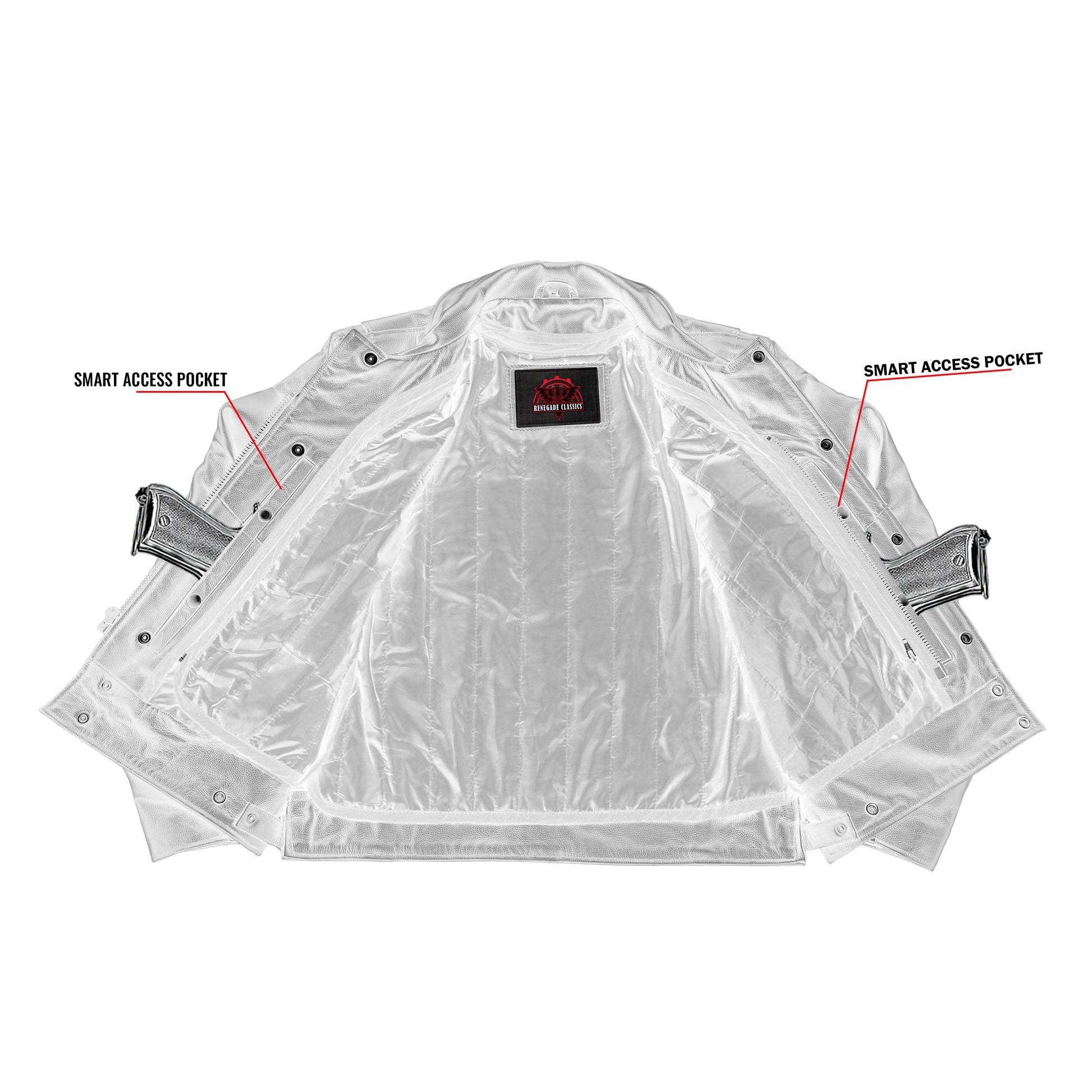 The Blackhawk Men’s Leather Motorcycle Jacket from our Police Line Collection is more than a jacket — it’s tough rider gear. Made from high-quality black leather, it’s strong, stylish, and built for the open road. It has a quilted lining, heavy-duty zippers, and reinforced stitching for durability. Features like underarm vents, adjustable sides, and an action back make it comfortable and useful. Perfect for city rides or long highways, this jacket offers protection, freedom, and true biker style. Ride with confidence and show your biker spirit in the Blackhawk.