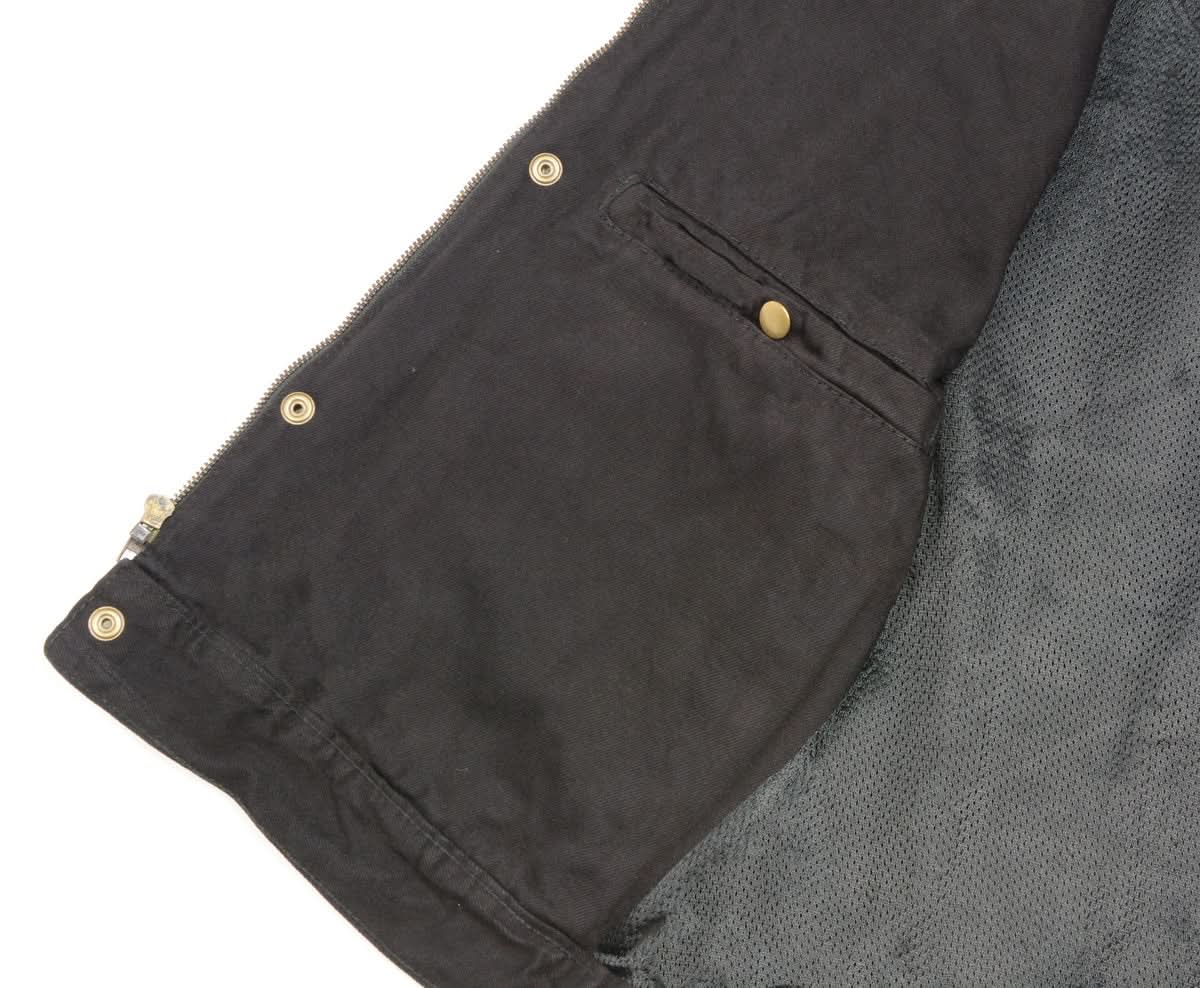 Club Vest CV3004LT Men's Black Denim Collarless Vest with Concealed Snaps, Hidden Zipper and Conceal and Carry Pockets