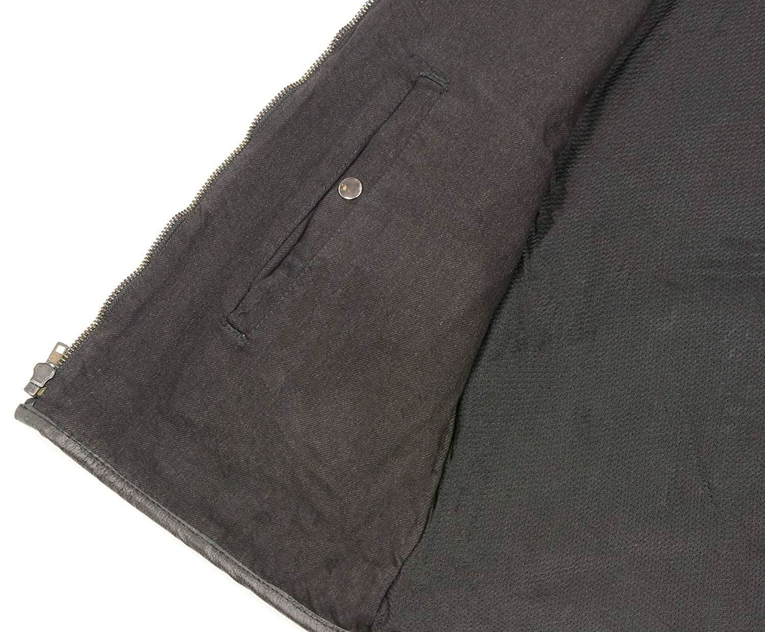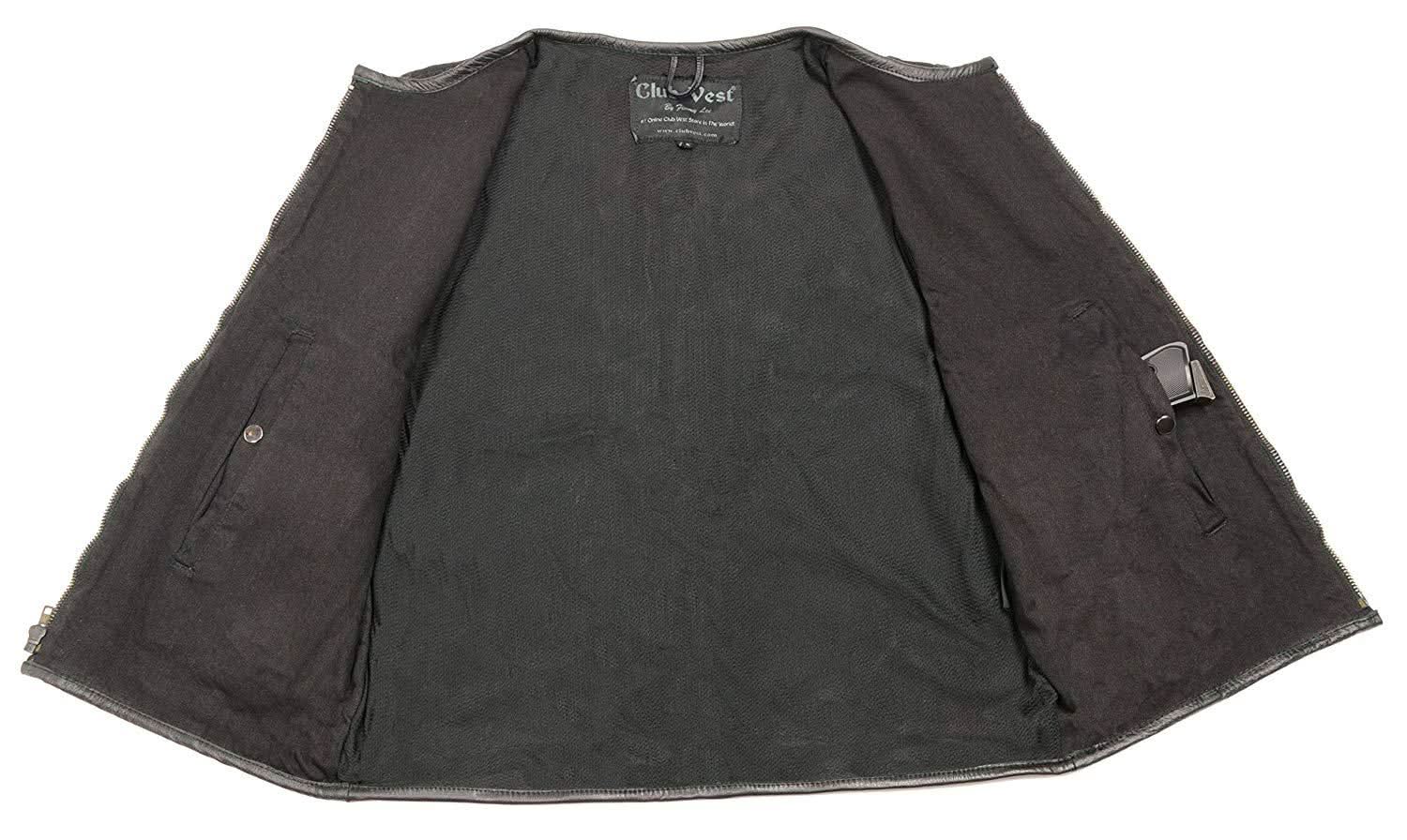 Club Vest CVM3038 Men's Black Denim Collarless Motorcycle Club Style Vest with Leather Trim