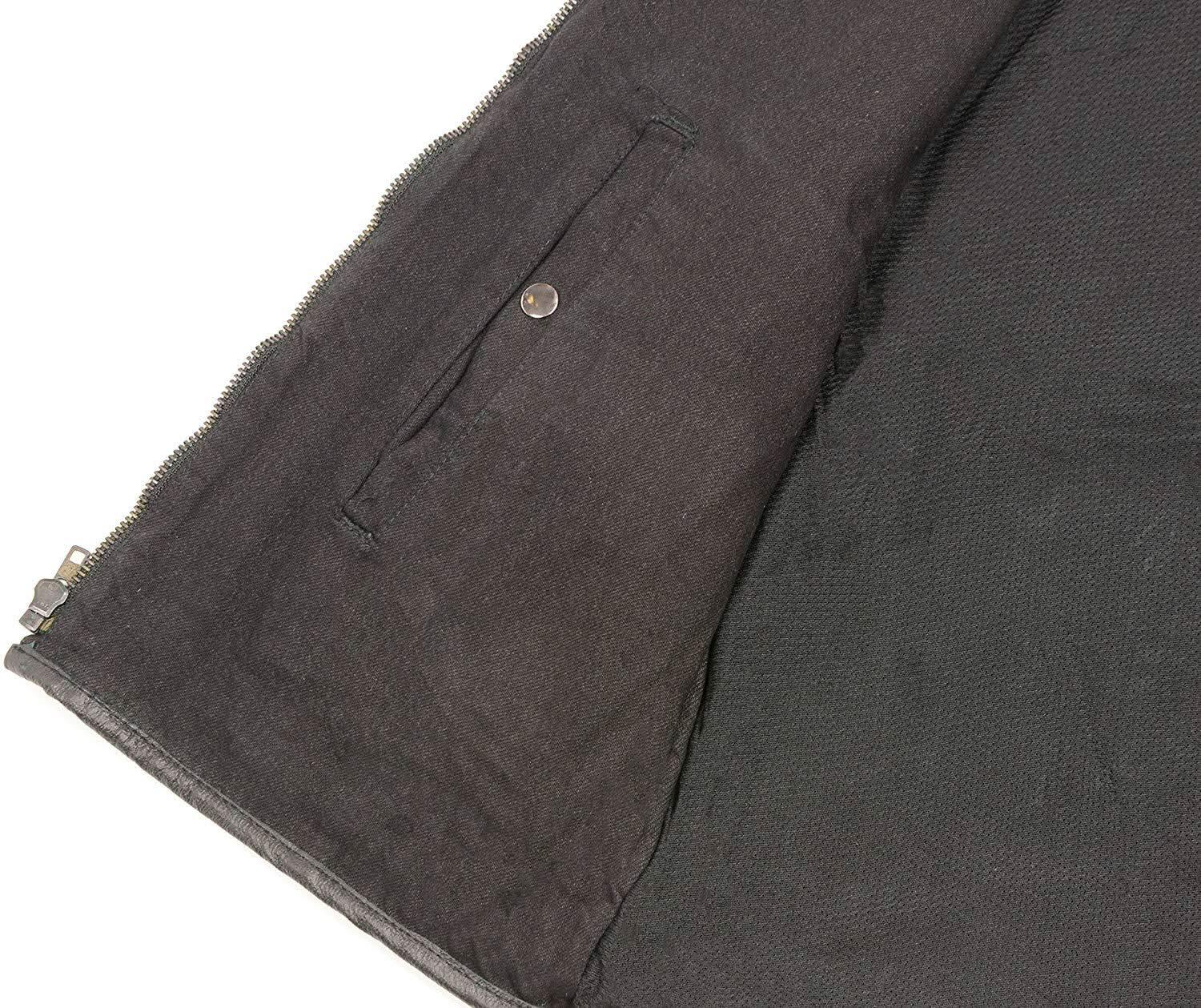 Club Vest CVM3038 Men's Black Denim Collarless Motorcycle Club Style Vest with Leather Trim