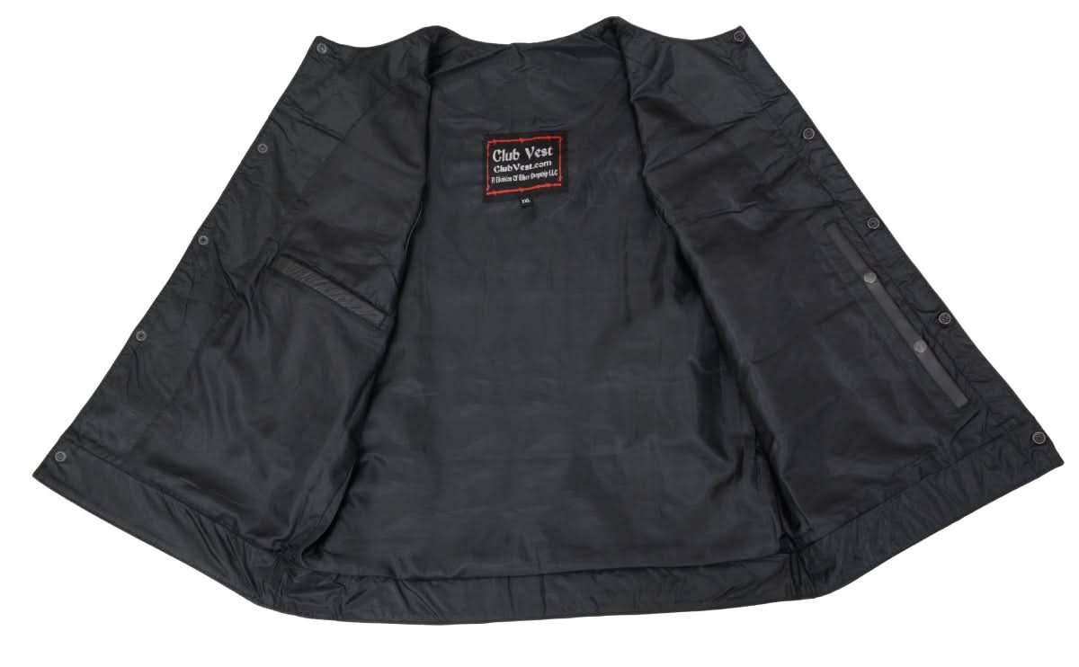 Club Vest CVM3721 Men’s Black Collarless Leather Motorcycle Vest