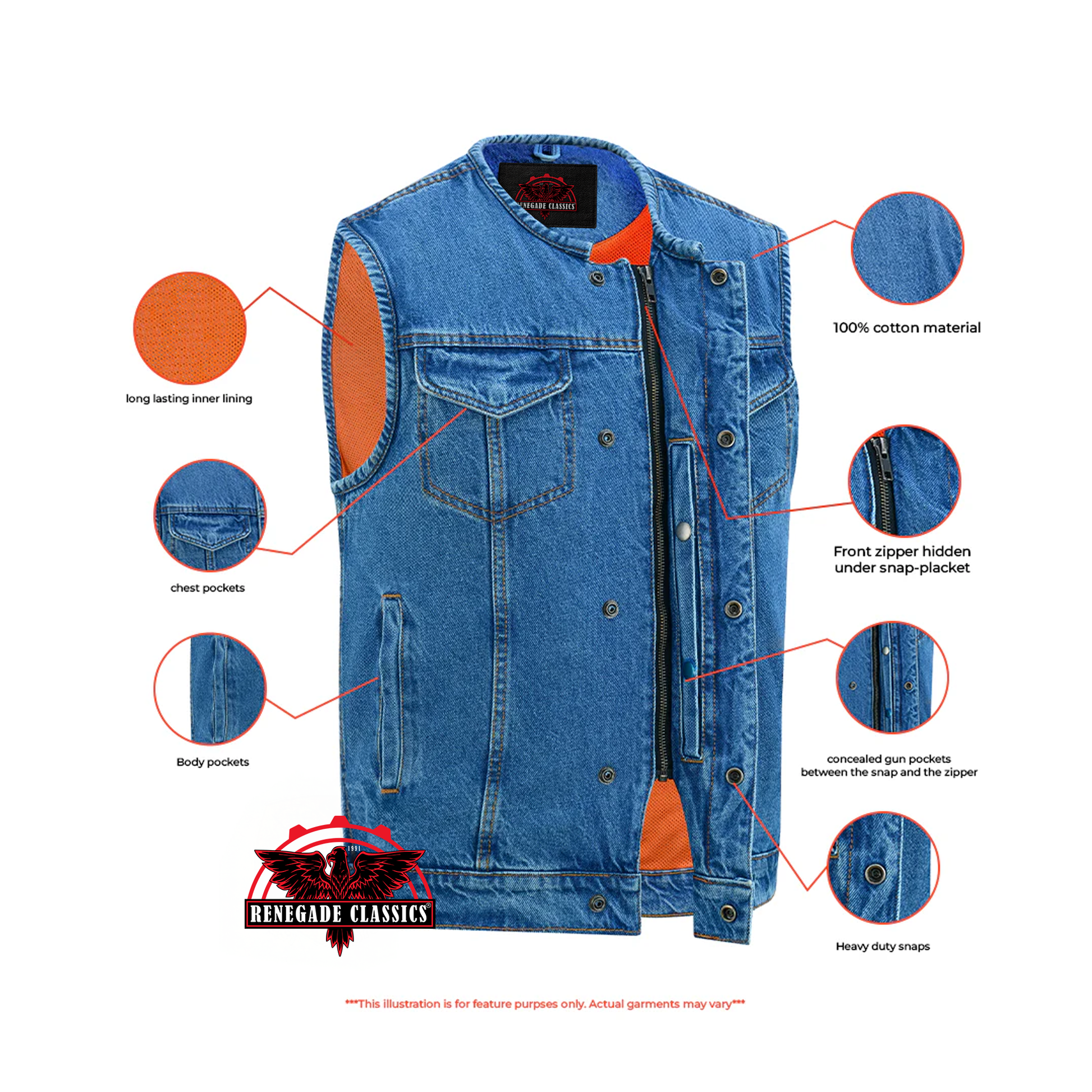 2 upgraded style concealed gun pockets between the snap and the zipper made of special heavy-duty textile with built-in holsters and snap closure.