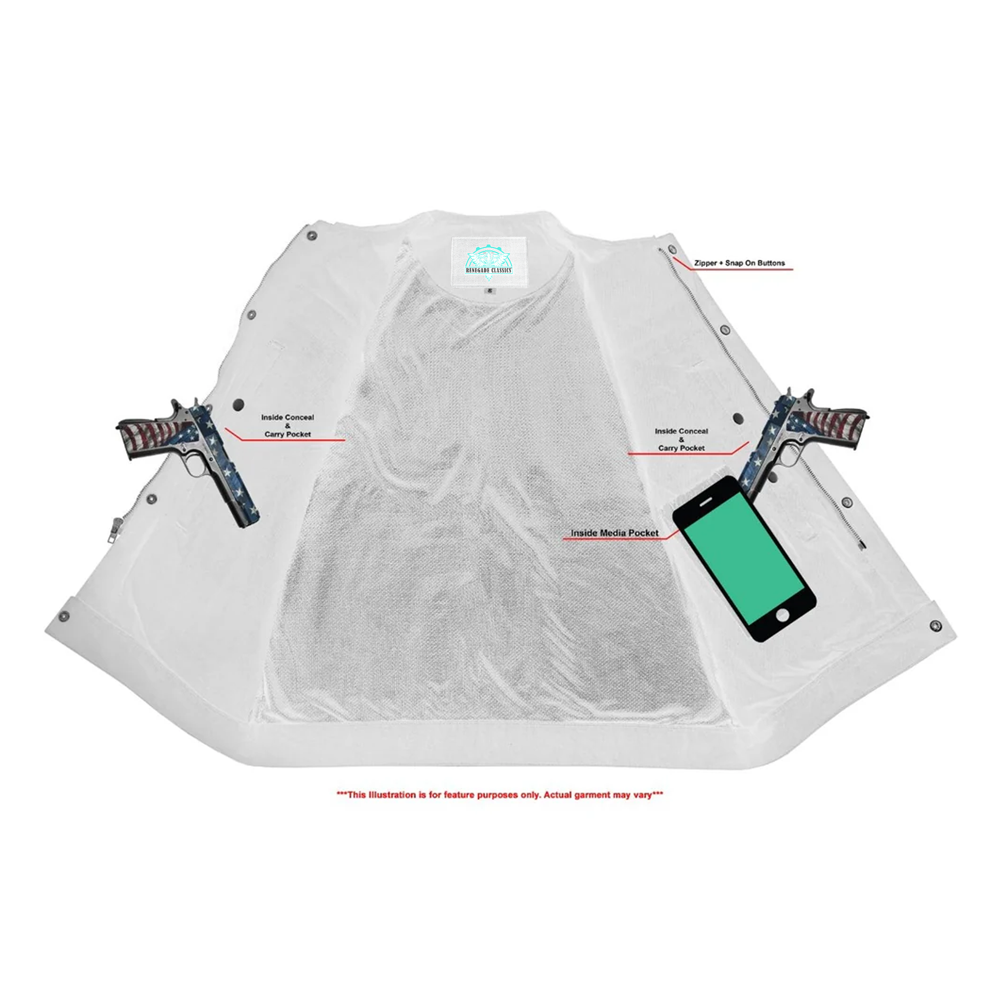 The Nightcore Men’s black denim motorcycle vest is where a rider’s edge truly takes shape, blending attitude with function in every mile. Crafted from rugged denim with concealed snaps and a hidden zipper, it blocks the wind while keeping your ride smooth. Inside, carry pockets hold what matters most, while the clean back is ready for patches or club colors. Whether worn as a black denim biker vest or a denim motorcycle club vest, it’s built to ride with you.