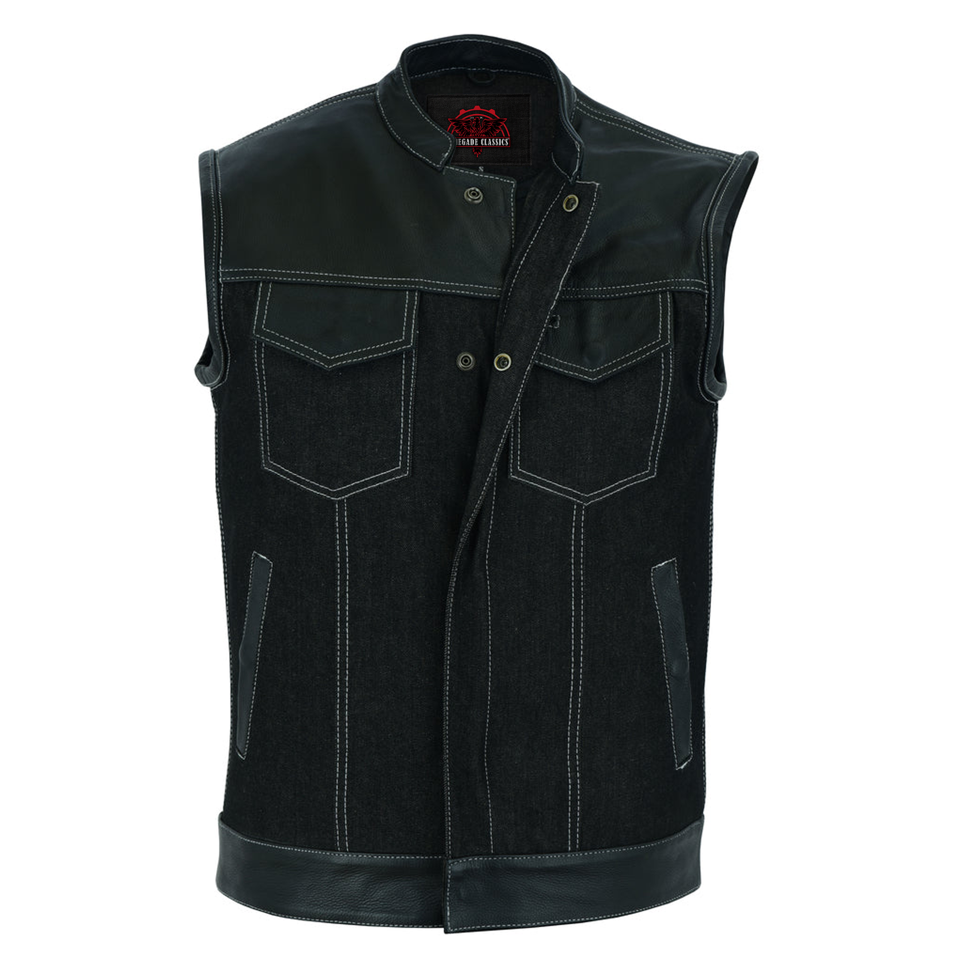 Stormskin Men's Leather-Denim Combo Motorcycle Vest