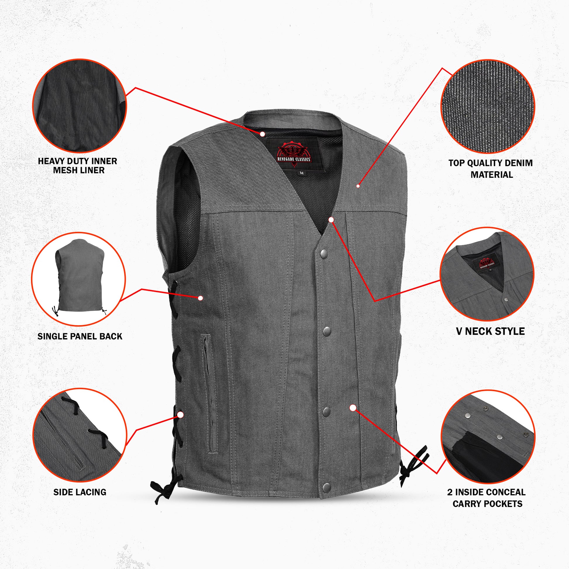 Stormcraft Men's Gray Denim Motorcycle Vest