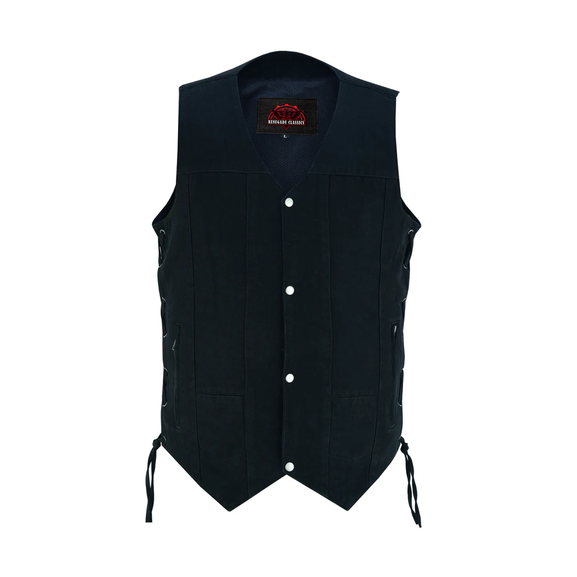Denhawk Men's Tall Black Denim Motorcycle Vest