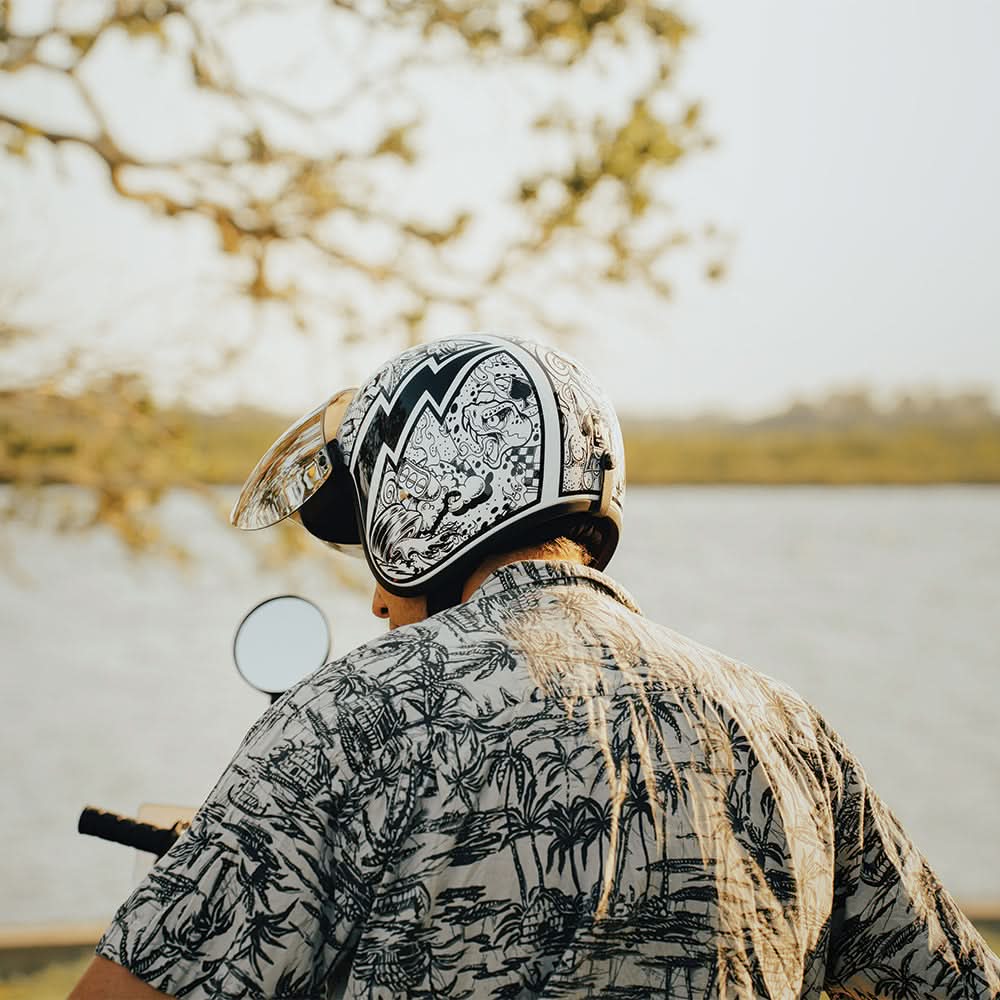- Customizable Fit: Our graphic motorcycle helmet with visor offers 3 shell sizes and 6 helmet padding sizes, catering to riders from XS to 2XL. Enjoy a personalized fit for maximum safety and comfort on every ride.
