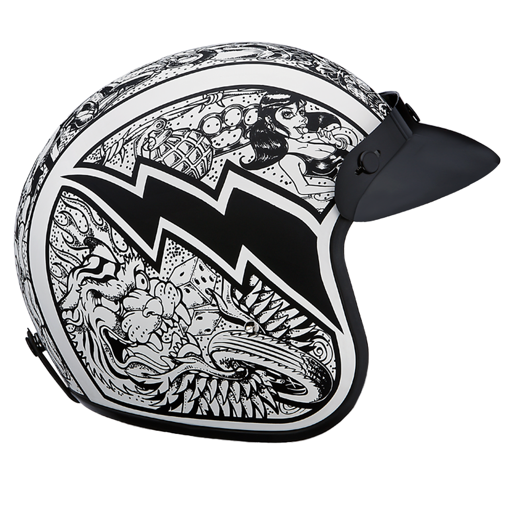 DOT Approved Daytona Cruiser Open Face Motorcycle Helmet - Men, Women & Youth - With Visor & Graphics - W/ Graffiti