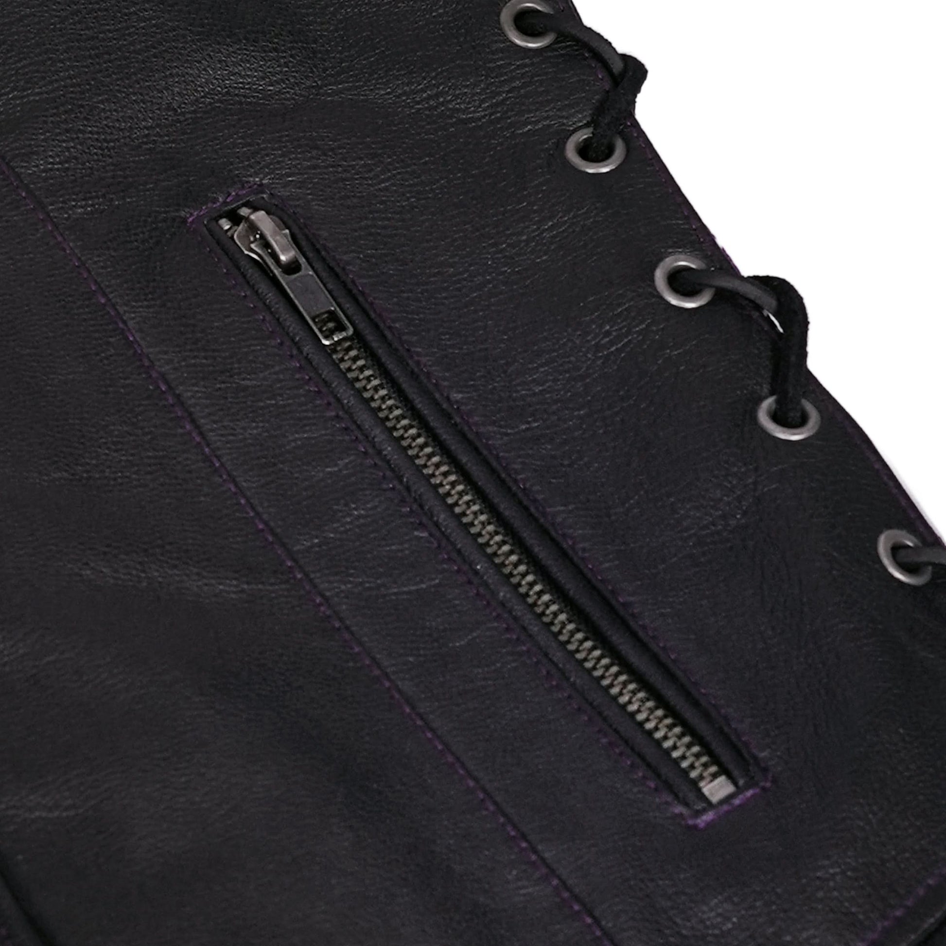 2 inside concealed gun pockets made of special heavy-duty textile with built-in holsters and snap closure.