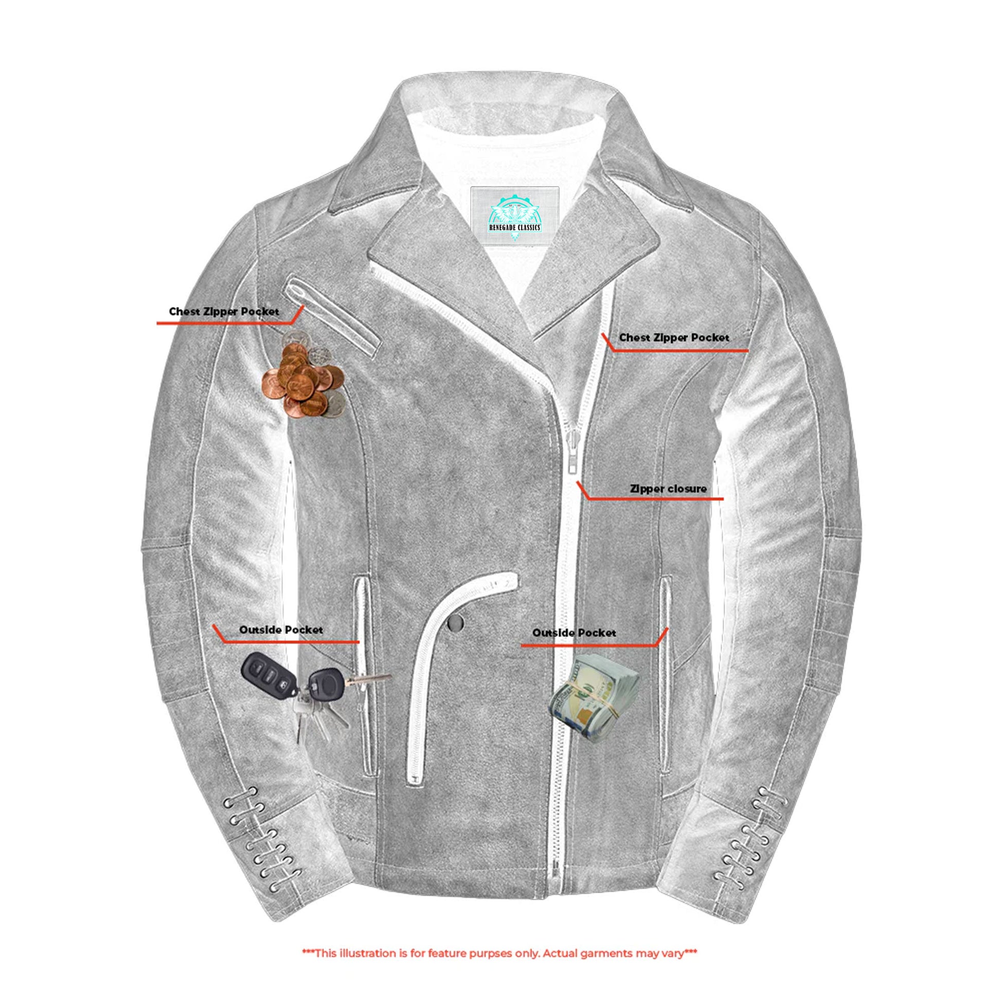 2 inside concealed gun pockets made of special heavy-duty textile with built-in holsters and snap closure.
