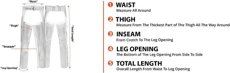 Satin underlining for comfortable riding in hot or cold weather.