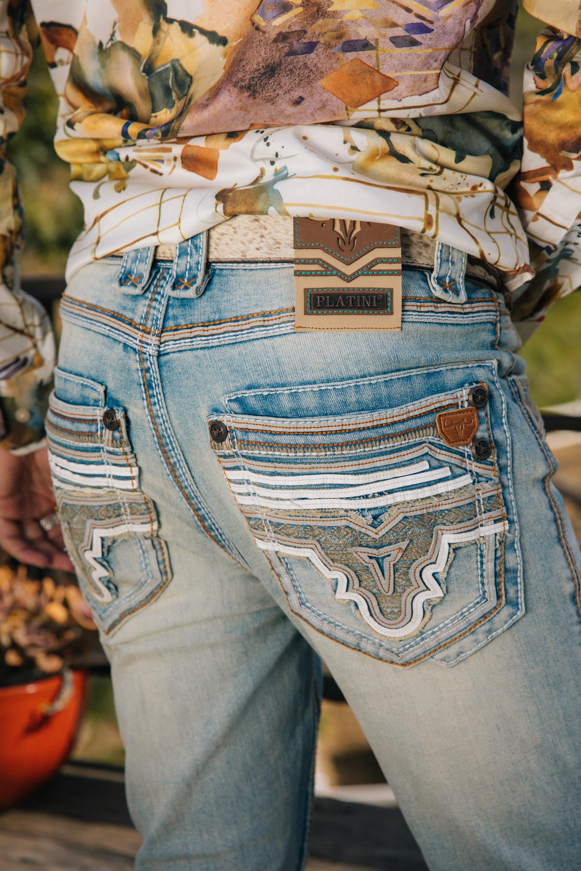 Description: Elevate your western-inspired wardrobe with our Platini Holt Slim Boot-Cut Jeans, a timeless staple designed for the modern cowboy. Crafted with cowboy-approved details, these jeans feature triple stitching and a streamlined silhouette through the seat, thigh, and knee. However, the leg widens from the knee downward, ensuring a perfect fit for your favorite boots. With a straight leg design, these jeans offer both style and comfort for any occasion.