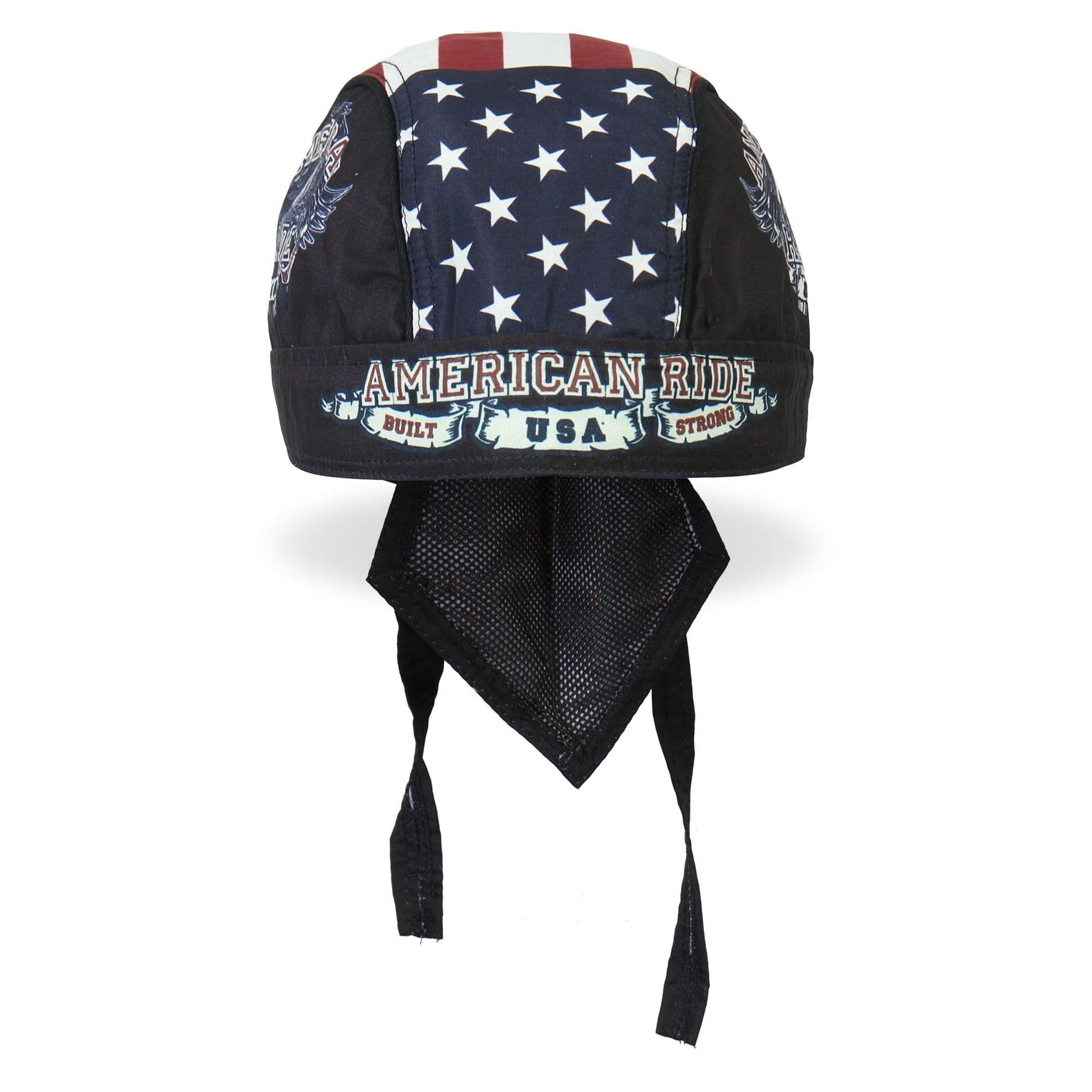 Whether you're hitting the road for a joyride on your motorcycle, getting together with your club, or just need some UV protection and sweat control, Hot Leathers premium doo rag head wraps are just what you need! Put on your new headwrap bandana while you run errands or handle some yard work. Represent your unique style with our moisture wicking, mesh lined head wraps, showcasing bright, long lasting designs sure to turn heads! This head wrap features our original American flag stars and stripes eagle design.