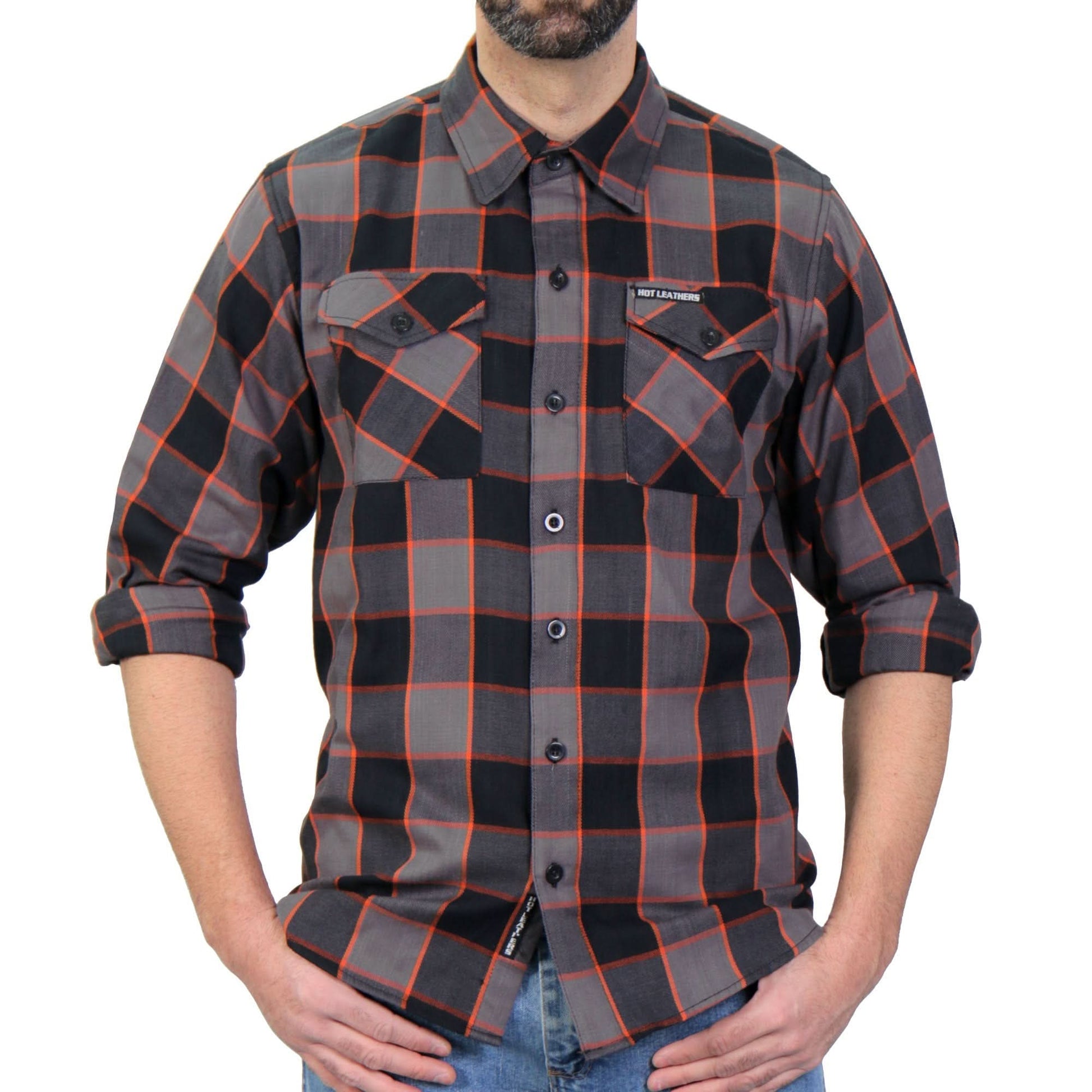 Hot Leathers FLM2020 Men's 'Black, Gray and Orange' Flannel Long Sleeve Shirt