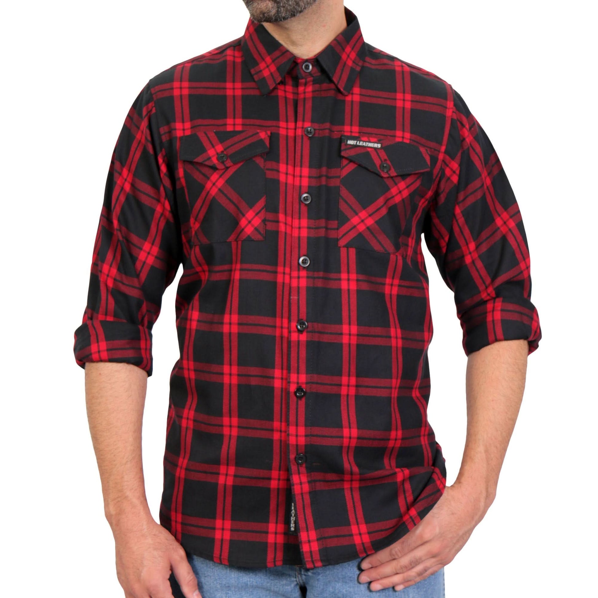 Hot Leathers FLM2021 Men's 'Red and Black' Flannel Long Sleeve Shirt