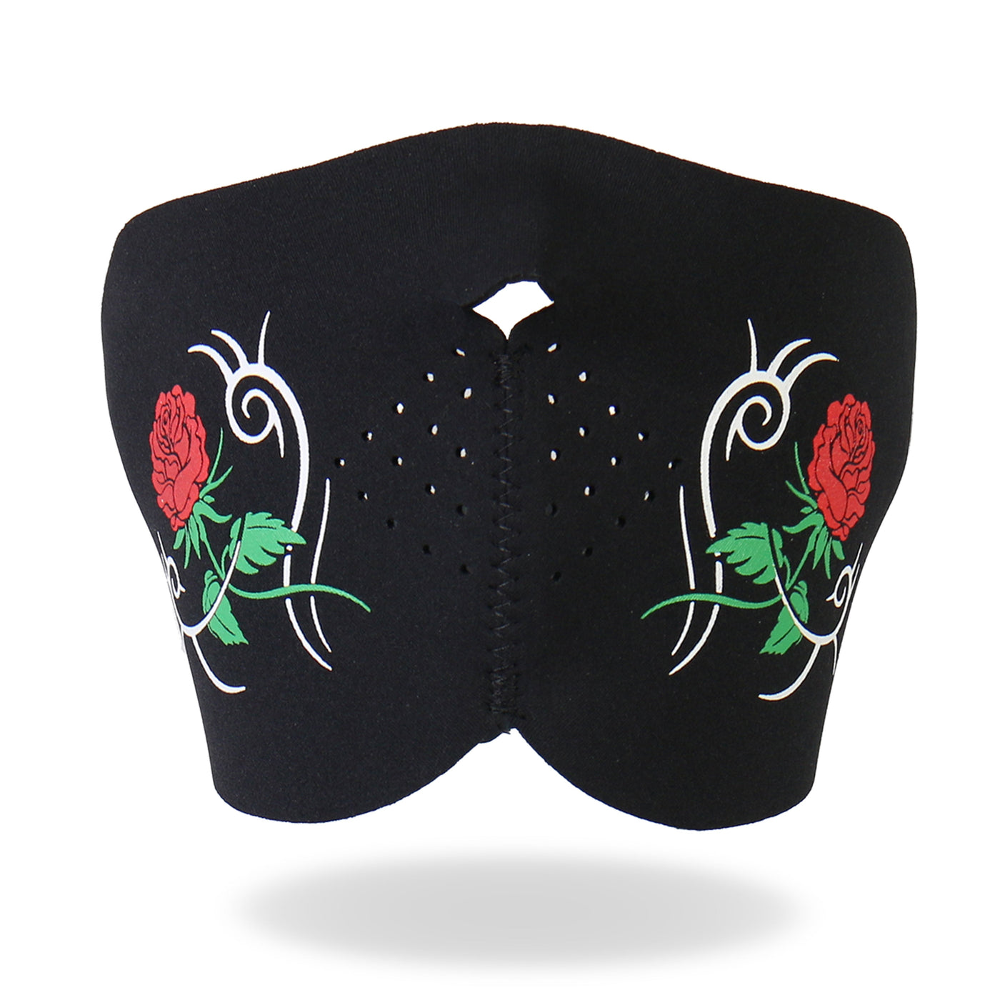 Soft Neoprene Motorcycle Half Face Masks. Lightweight, the material stretches to fit with adjustable back closure. Comfortable to wear alone or with your helmet. Perfect for cold weather riding.