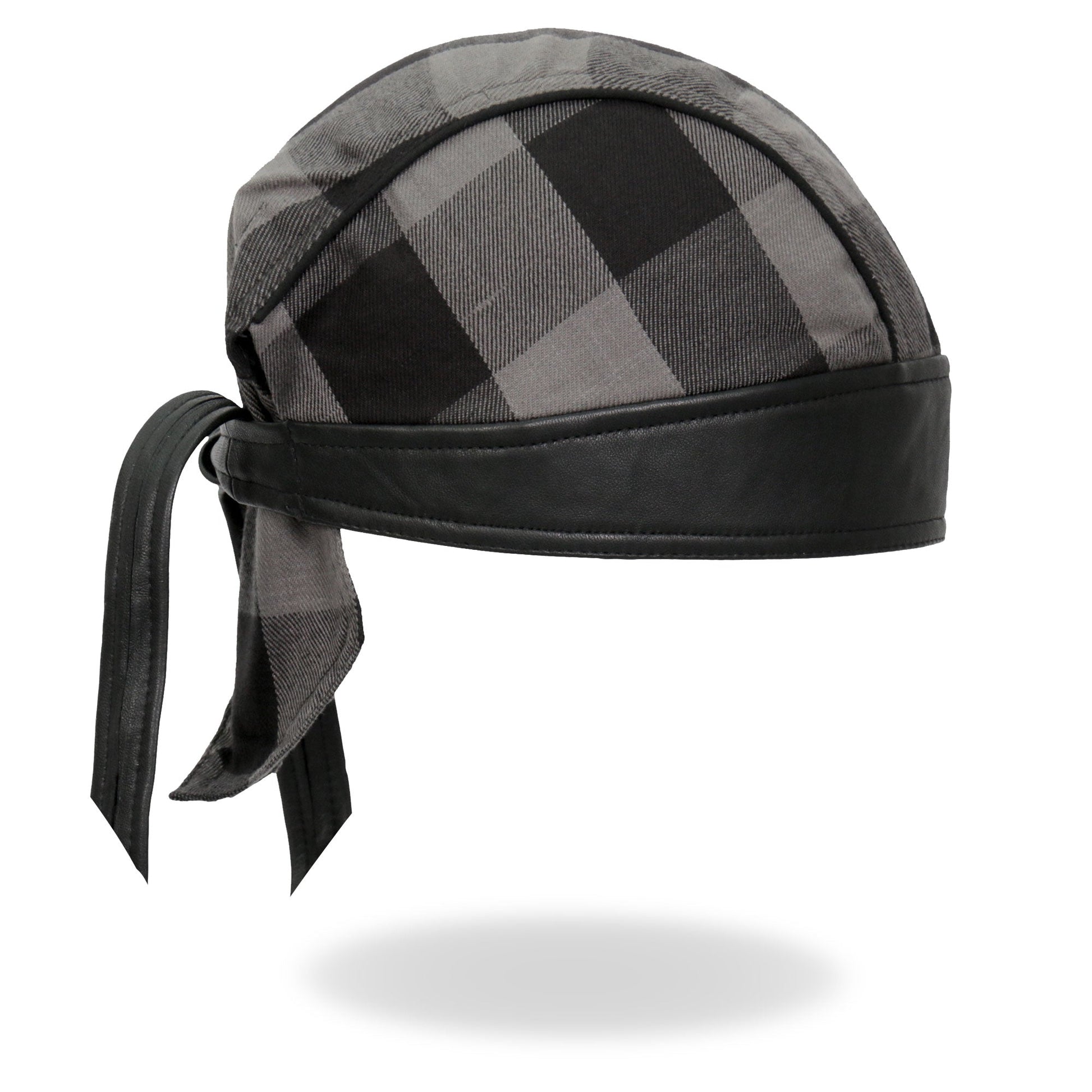 Whether you're hitting the road for a joyride on your motorcycle, getting together with your club, or just need some UV protection and sweat control, Hot Leathers premium doo rag head wraps are just what you need! Put on your new headwrap bandana while you run errands or handle some yard work. Represent your unique style with our moisture wicking, mesh lined head wraps, showcasing bright, long lasting designs sure to turn heads! This head wrap features our original gray and black flannel design with just a touch of leather to give it some edge.