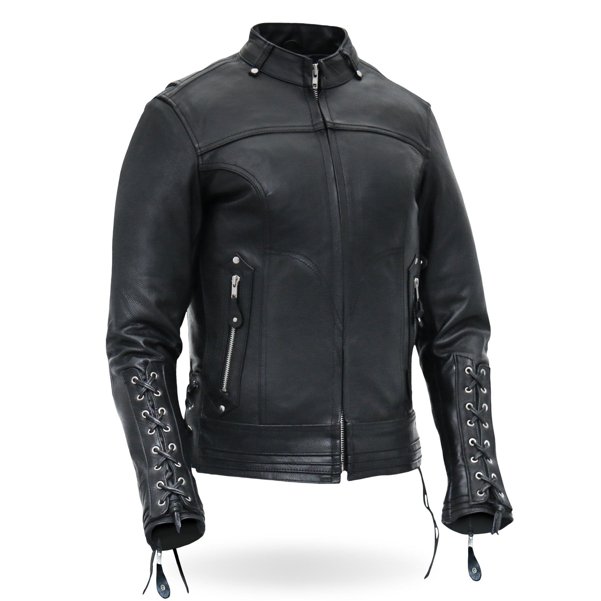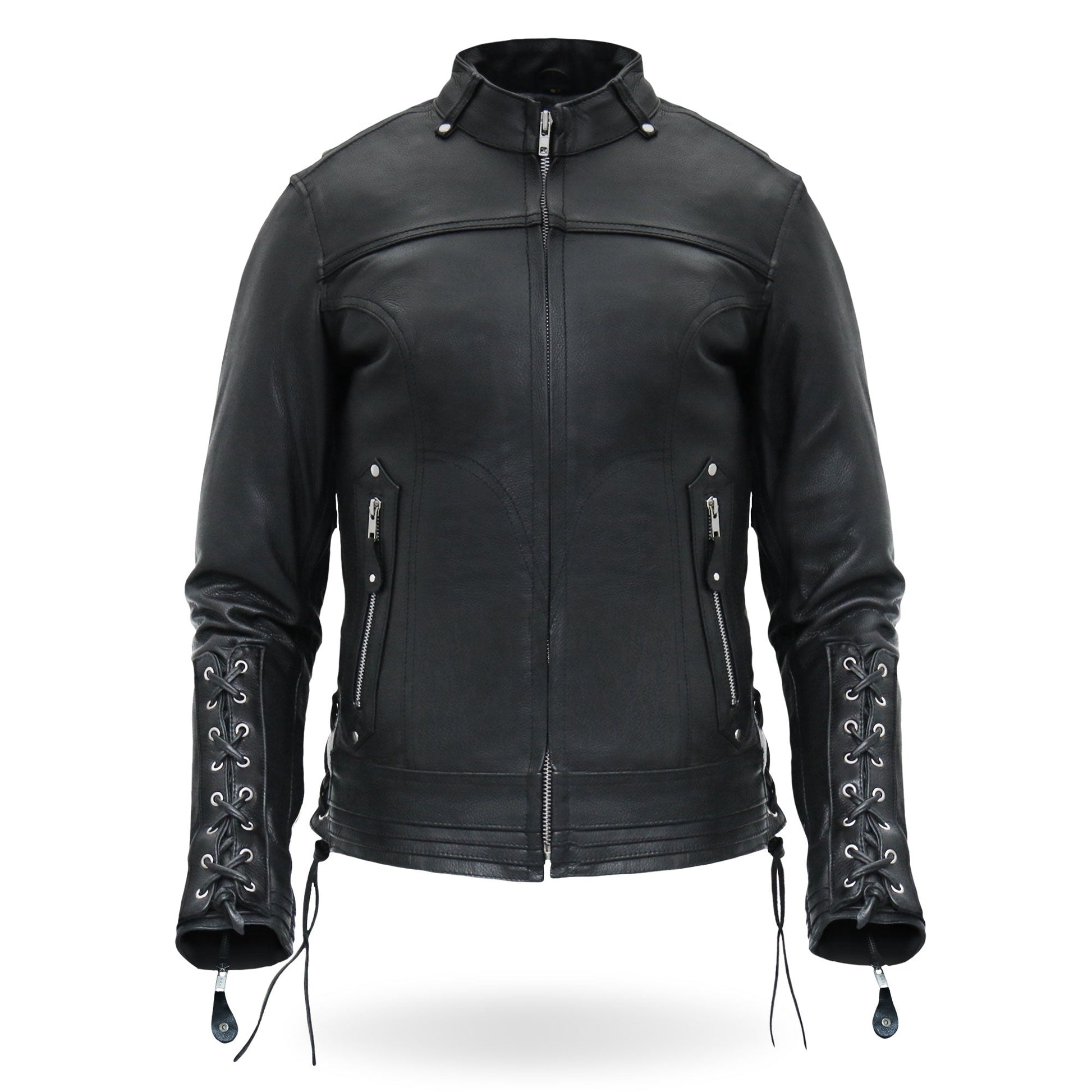 Hot Leathers JKL1025 Ladies Motorcycle style Lace Up Sleeves Leather Biker Jacket