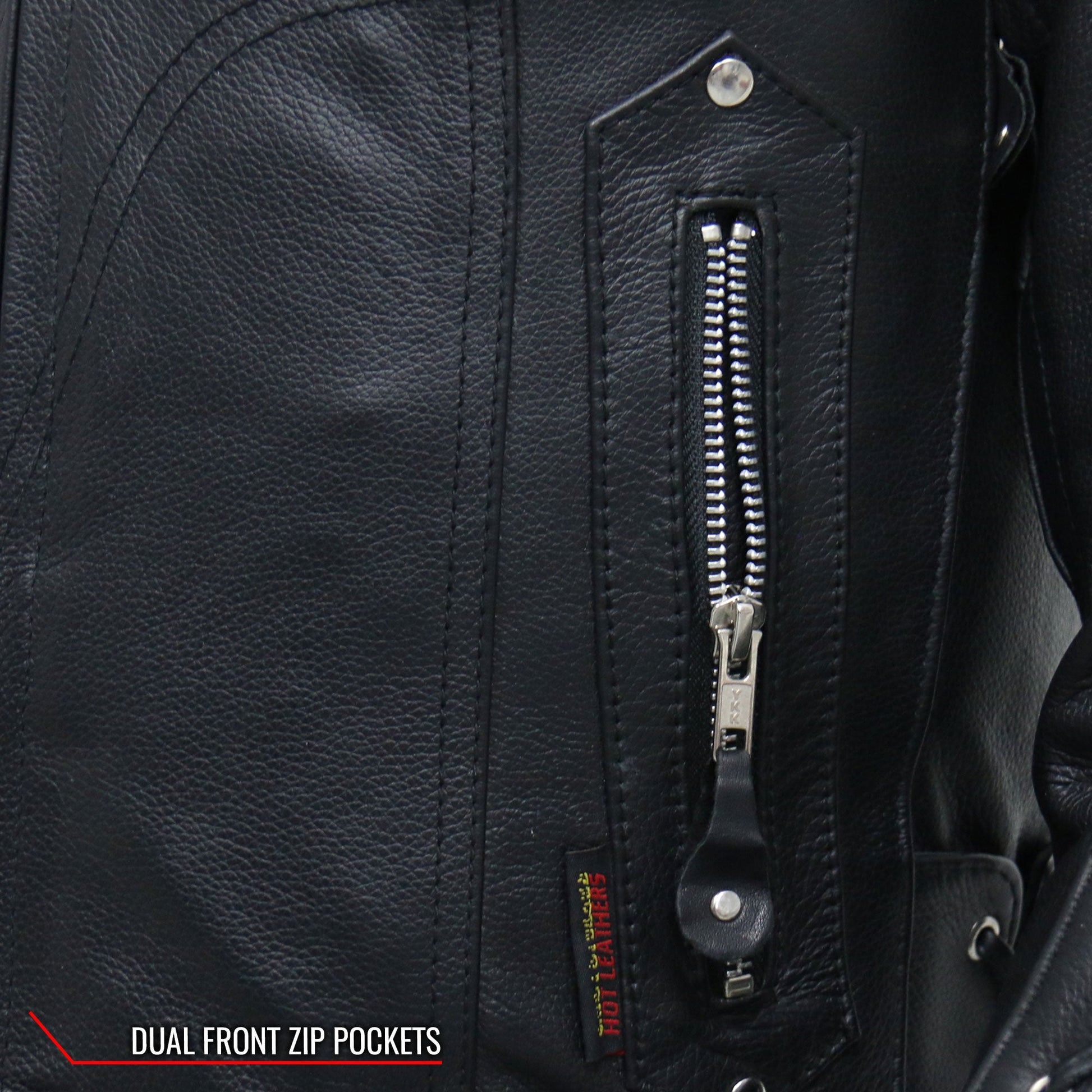 This leather jacket comes with a 90 day warranty. *Free ground shipping on ALL leather motorcycle jackets.
