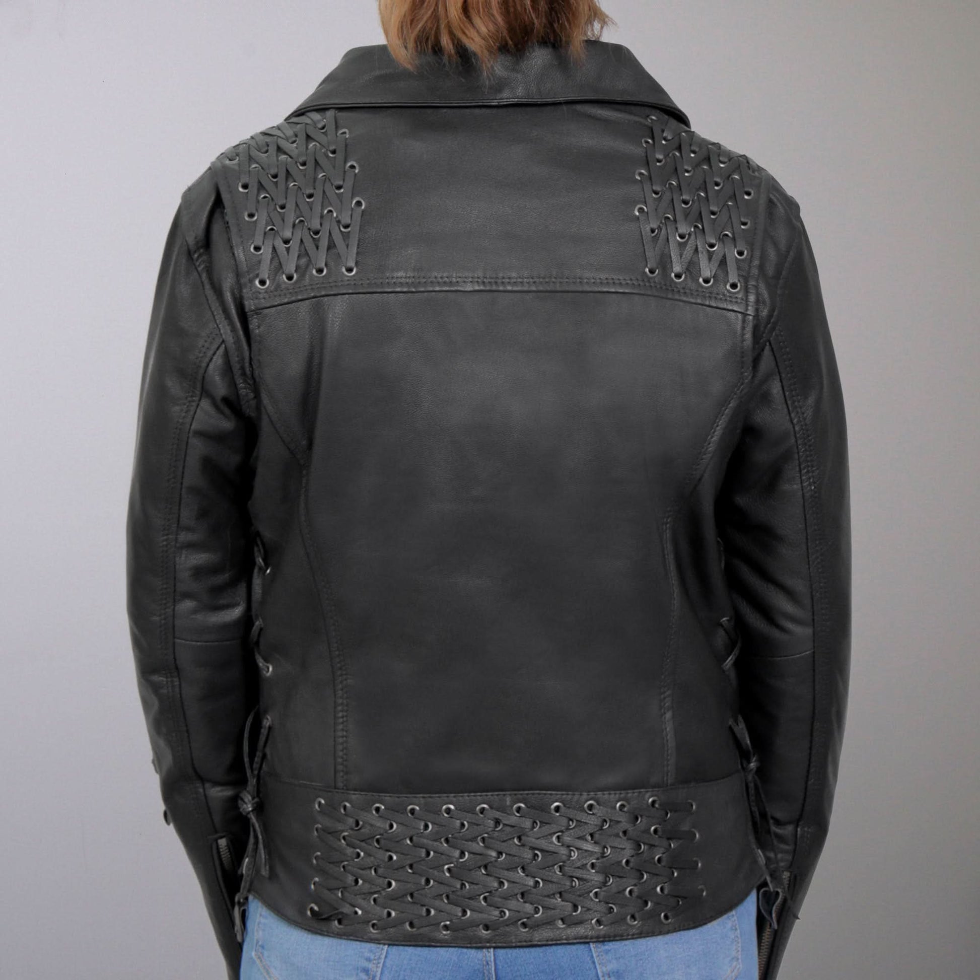 Hot Leathers JKL1027 Ladies Black Lace Detail Carry Conceal Leather Motorcycle Biker Jacket