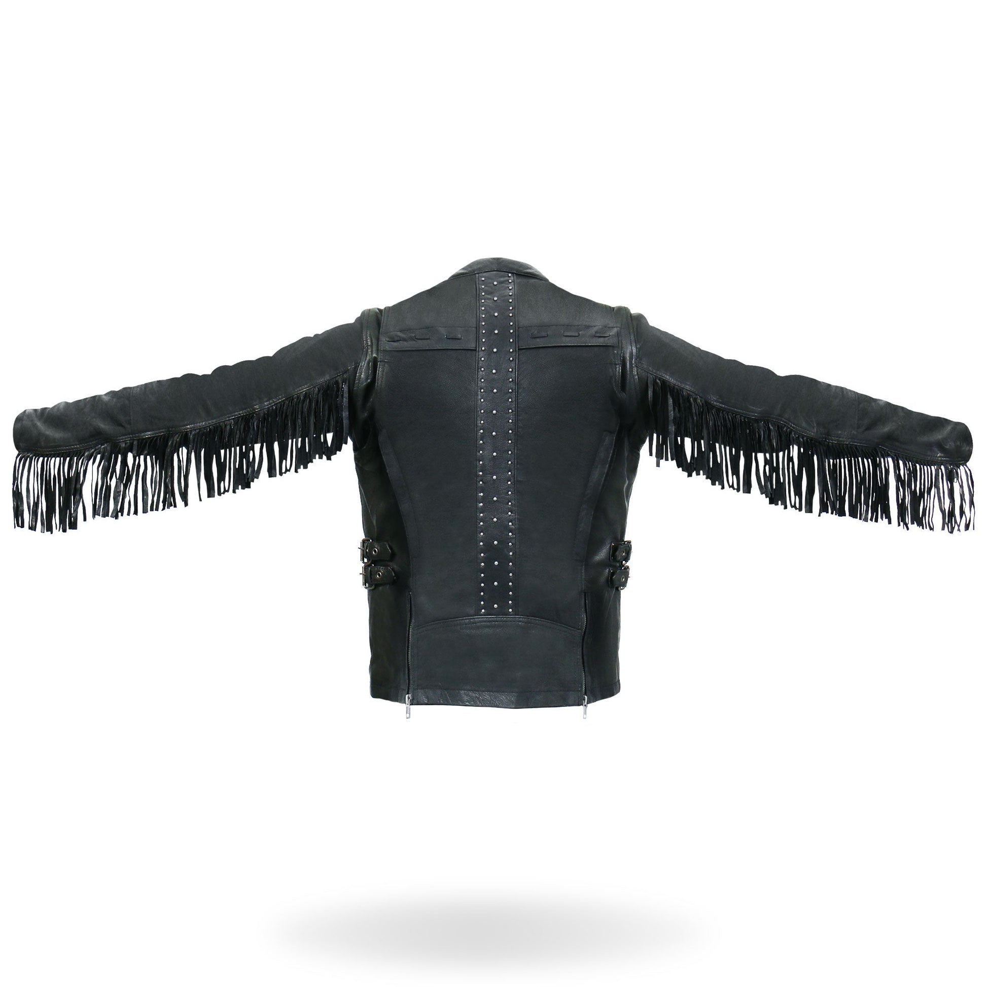 Hot Leathers JKL1028 Studs and Fringe Ladies Black Motorcycle style Carry Conceal Leather Biker Jacket