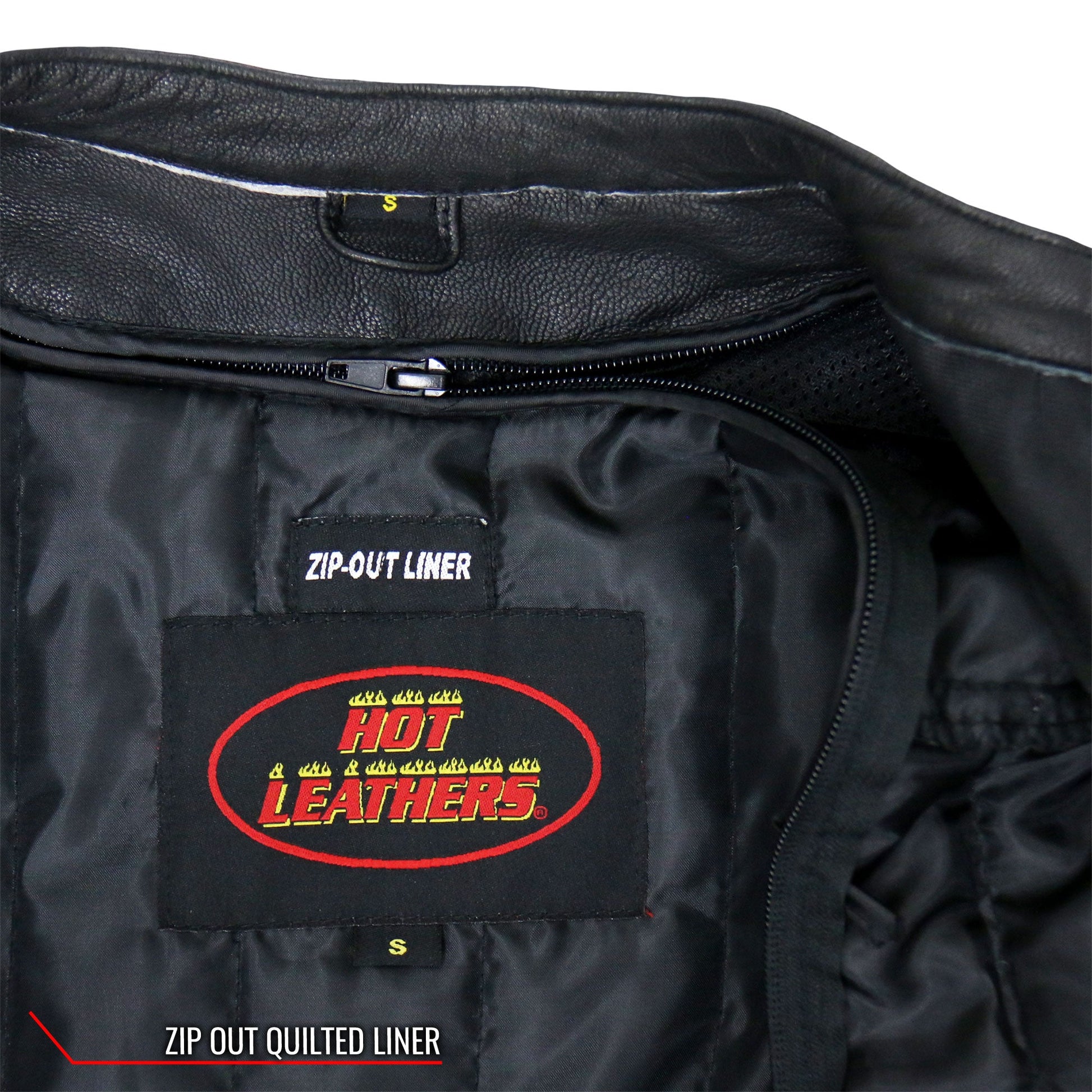 You asked for leather fringe and we listened. This all new Hot Leathers fringe motorcycle jacket is built using super soft medium weight cowhide and features silver YKK zippers and snaps. This jacket also comes with two under arm and two back vents, a great feature when you need that quick cool down while riding. The leather fringe on this jacket is the real standout feature and very eye catching. Another great detail is the triple row of silver studs going down the back. It also features two front zipper pockets, scooter style collar, two carry conceal inside pockets, adjustable buckle sides and a zip out quilted lining. A great new feature is lower back zipper panels, unzip these when on those long rides for more comfort.