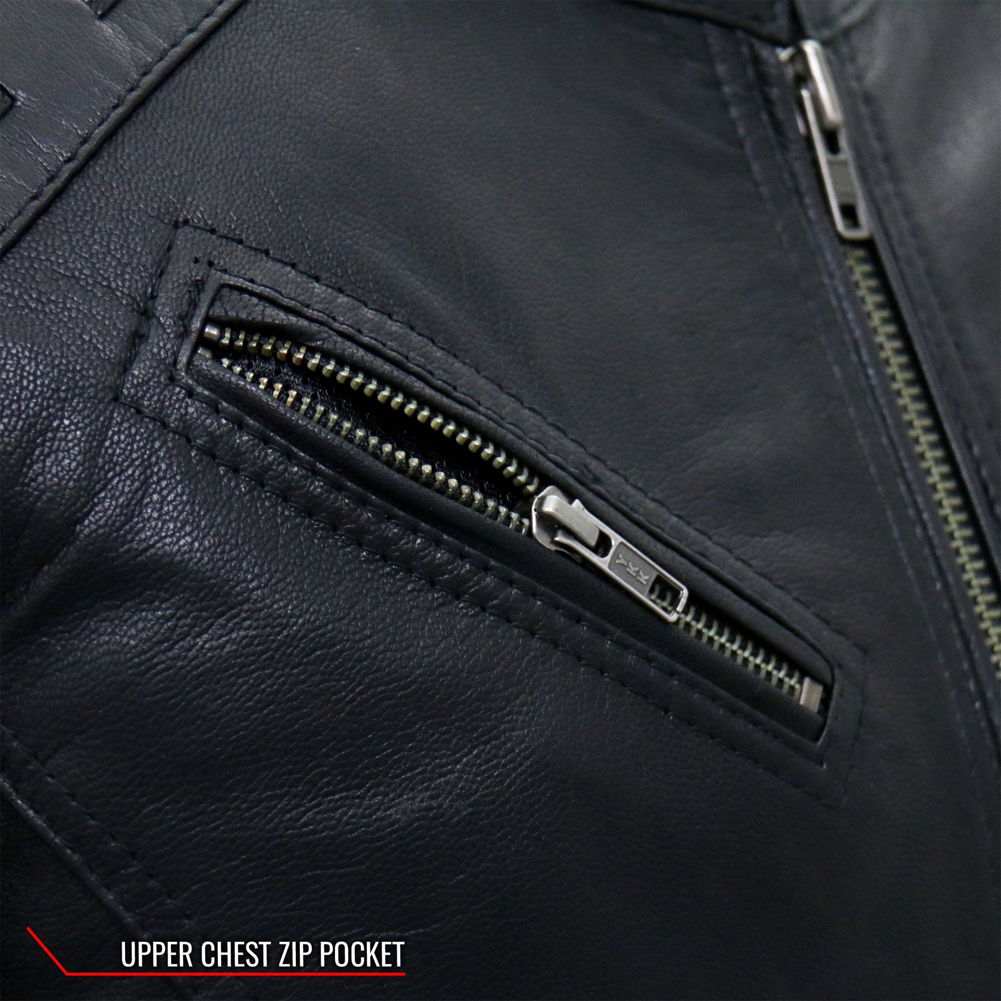 This leather jacket comes with a 90 day warranty. *Free ground shipping on ALL leather motorcycle jackets.