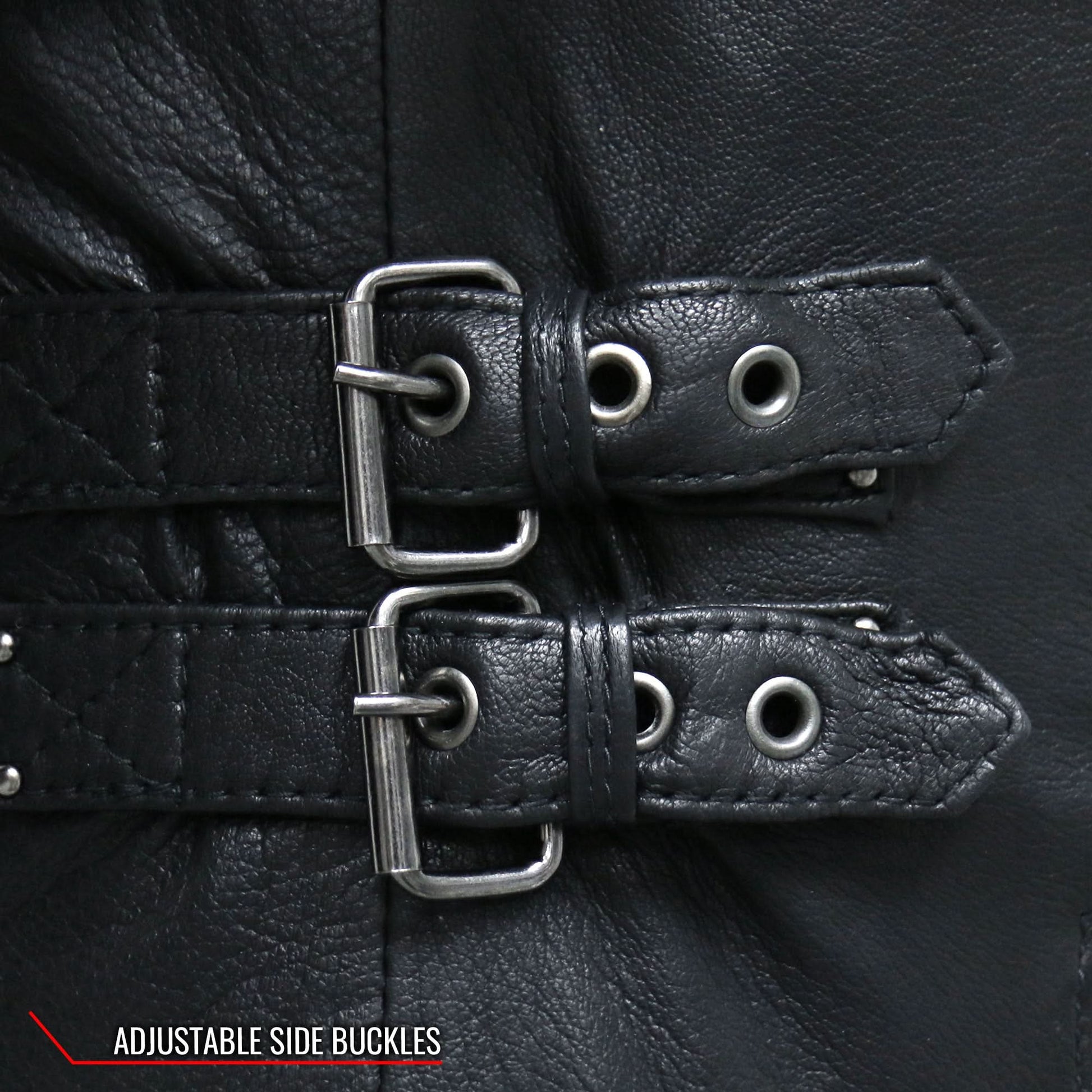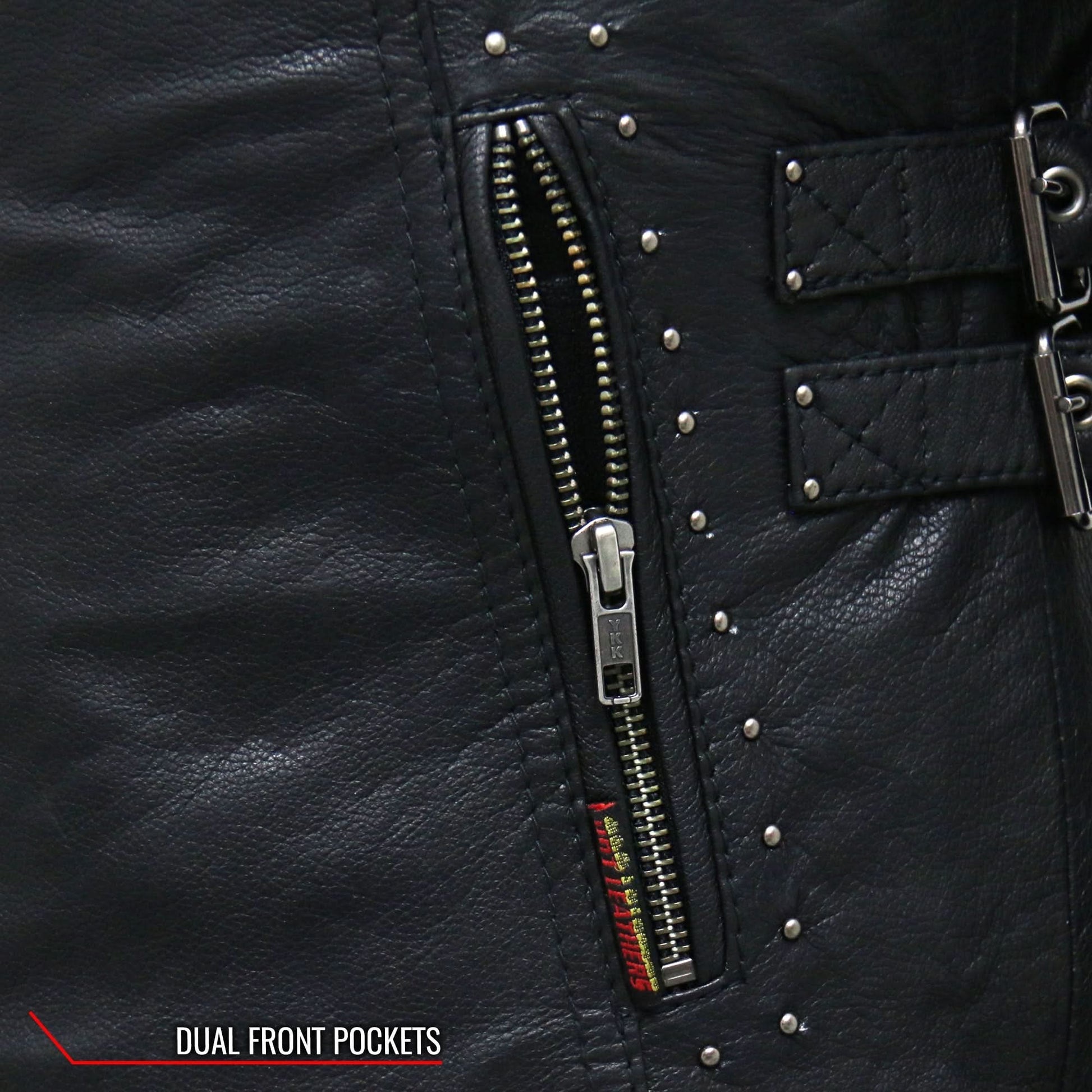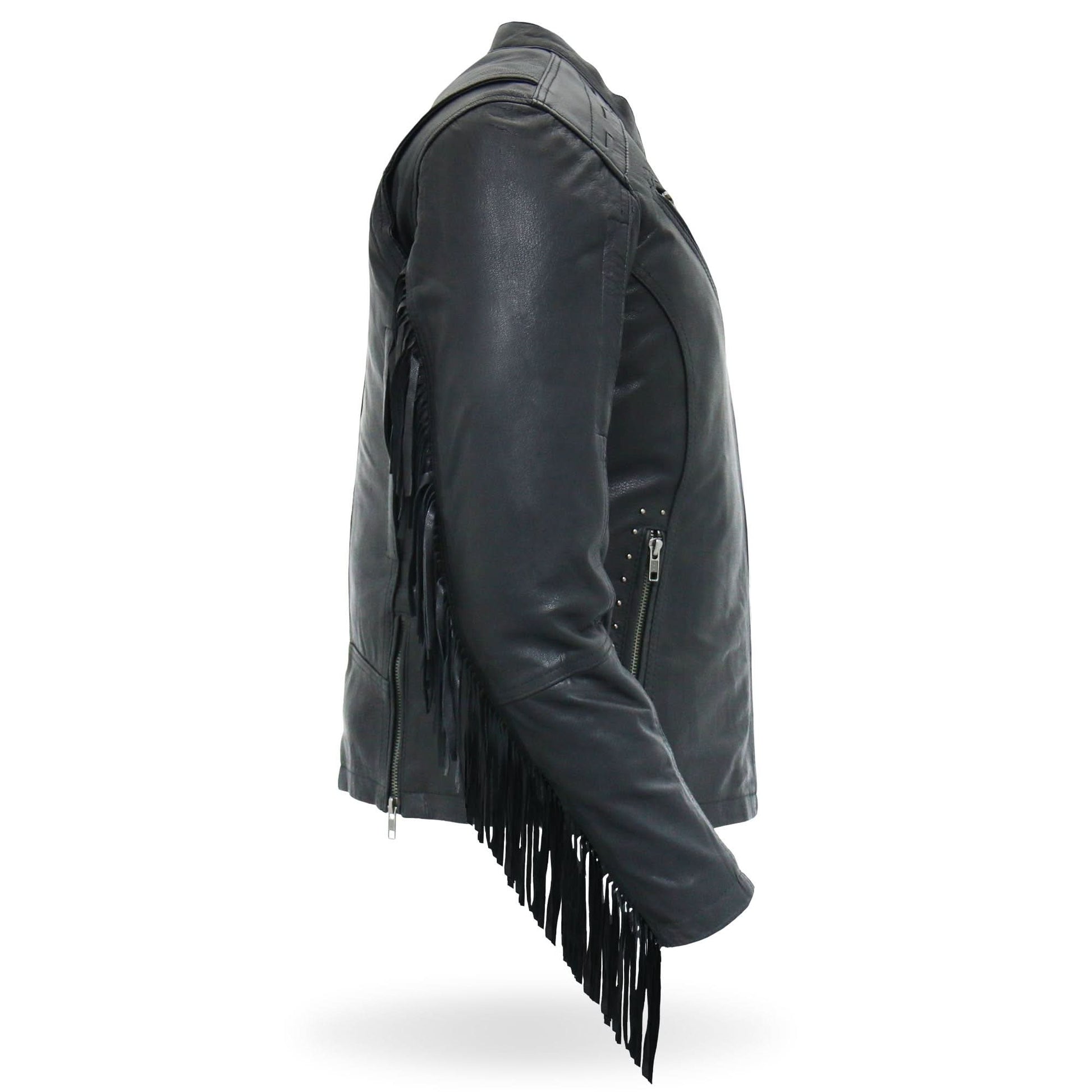 Hot Leathers JKL1028 Studs and Fringe Ladies Black Motorcycle style Carry Conceal Leather Biker Jacket