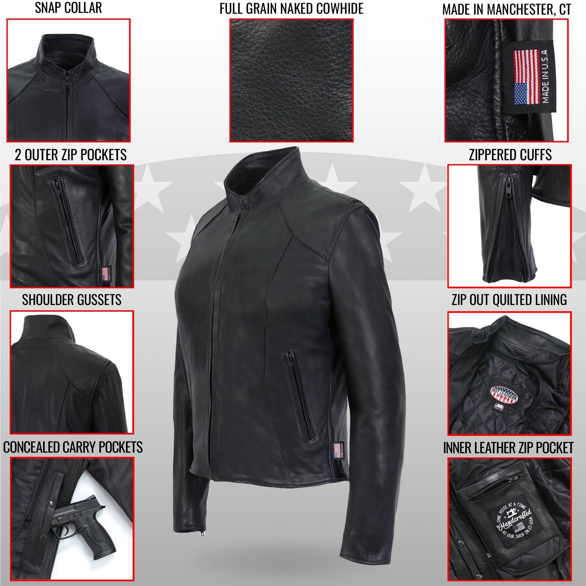 Hot Leathers JKL5003 USA Made Ladies Clean Cut Leather Motorcycle Biker Jacket