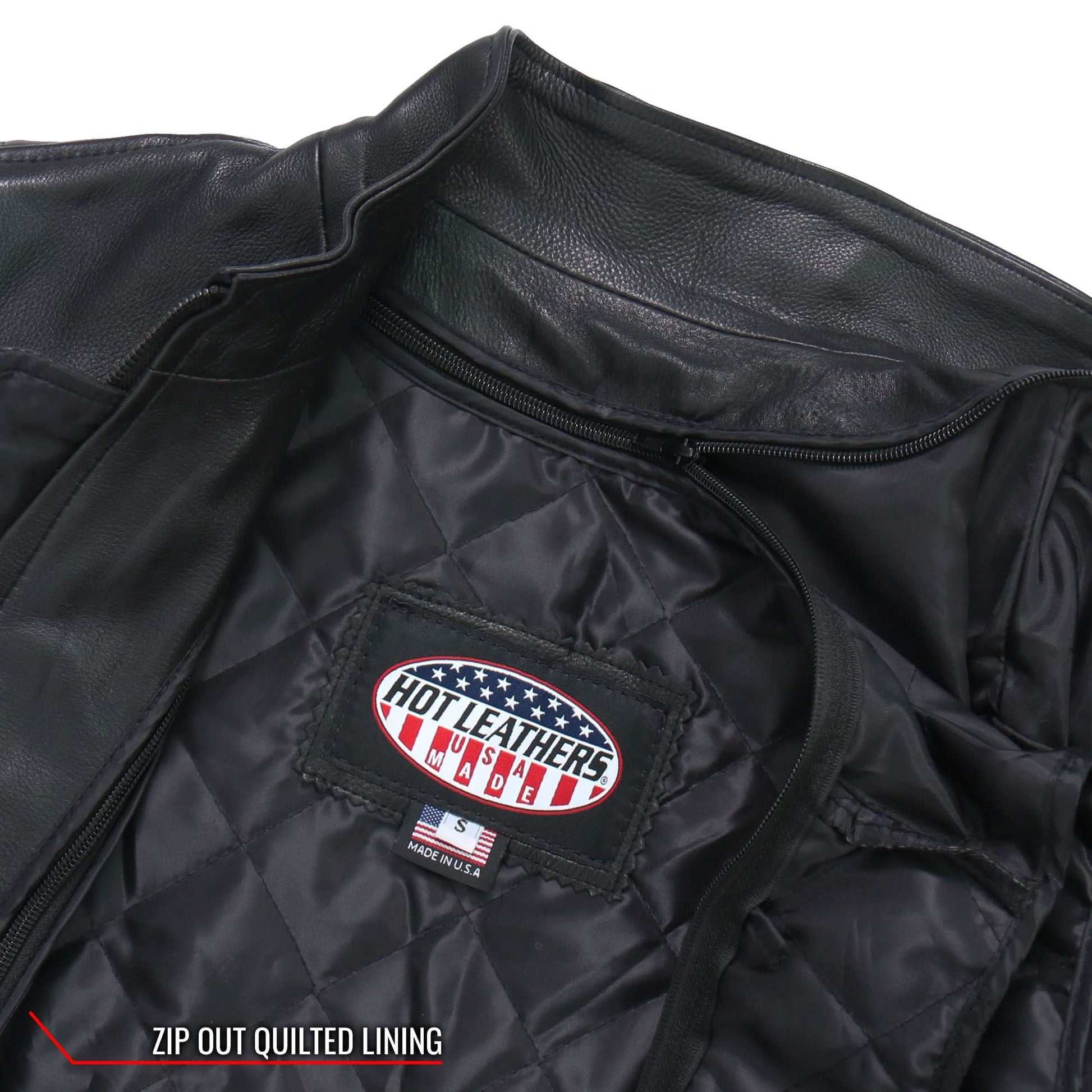 5 YEAR WARRANTY - This American Made leather jacket is backed by Hot Leathers 5 year warranty. Hot Leathers is proud to stand behind the quality and craftsmanship of this fine garment. All stitching and hardware is guaranteed against fault or defect for a period of 5 years from date of purchase.