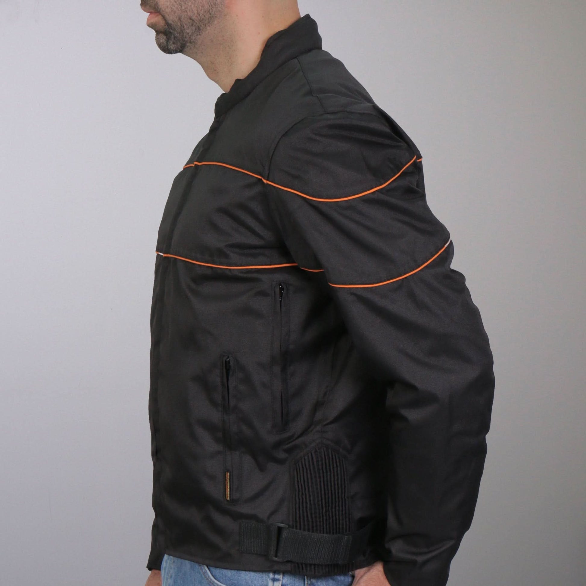 Hot Leathers JKM1026 Men’s Black Motorcycle style Nylon Biker Jacket with Orange Reflective Trim