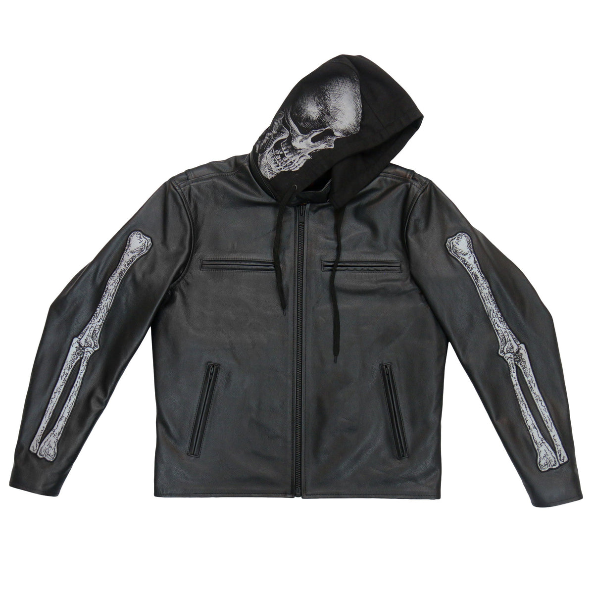 Hot Leathers JKM1031 Men’s Biker ‘Skull and Bones’ Leather Motorcycle Jacket with Flannel Lining - BLACK / M