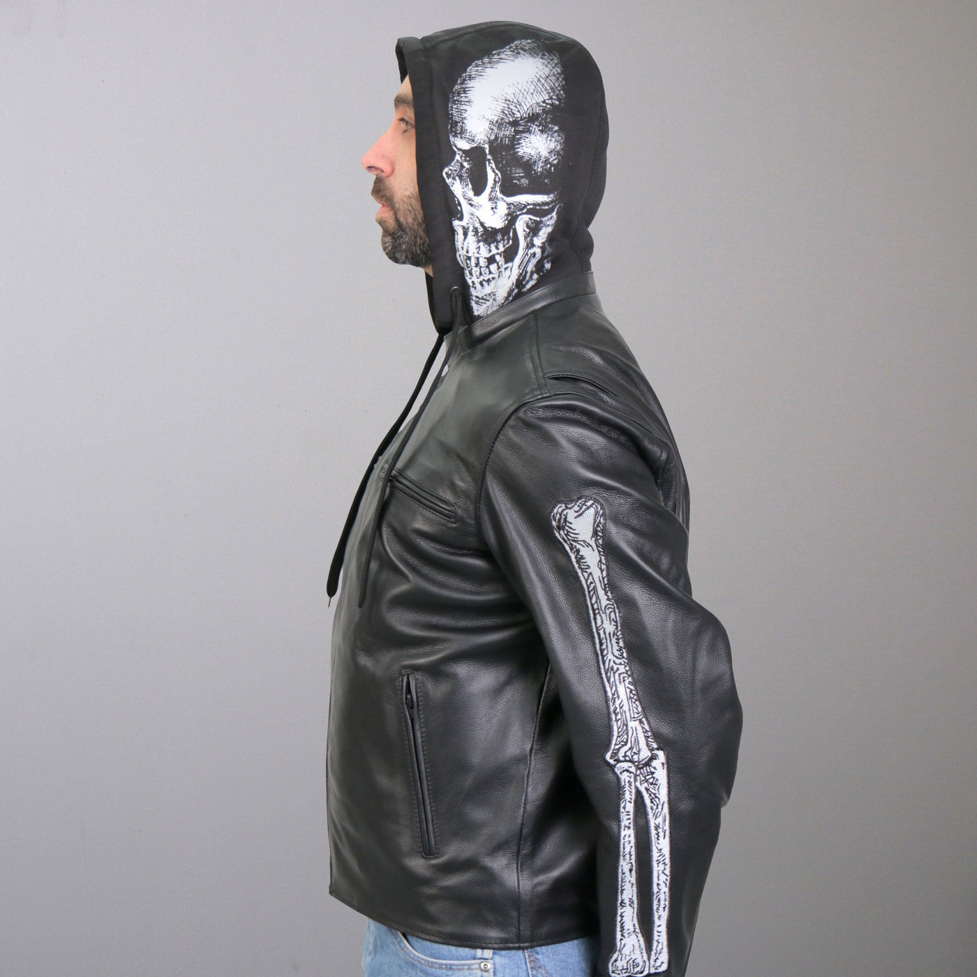 Hot Leathers JKM1031 Men’s Biker ‘Skull and Bones’ Leather Motorcycle Jacket with Flannel Lining