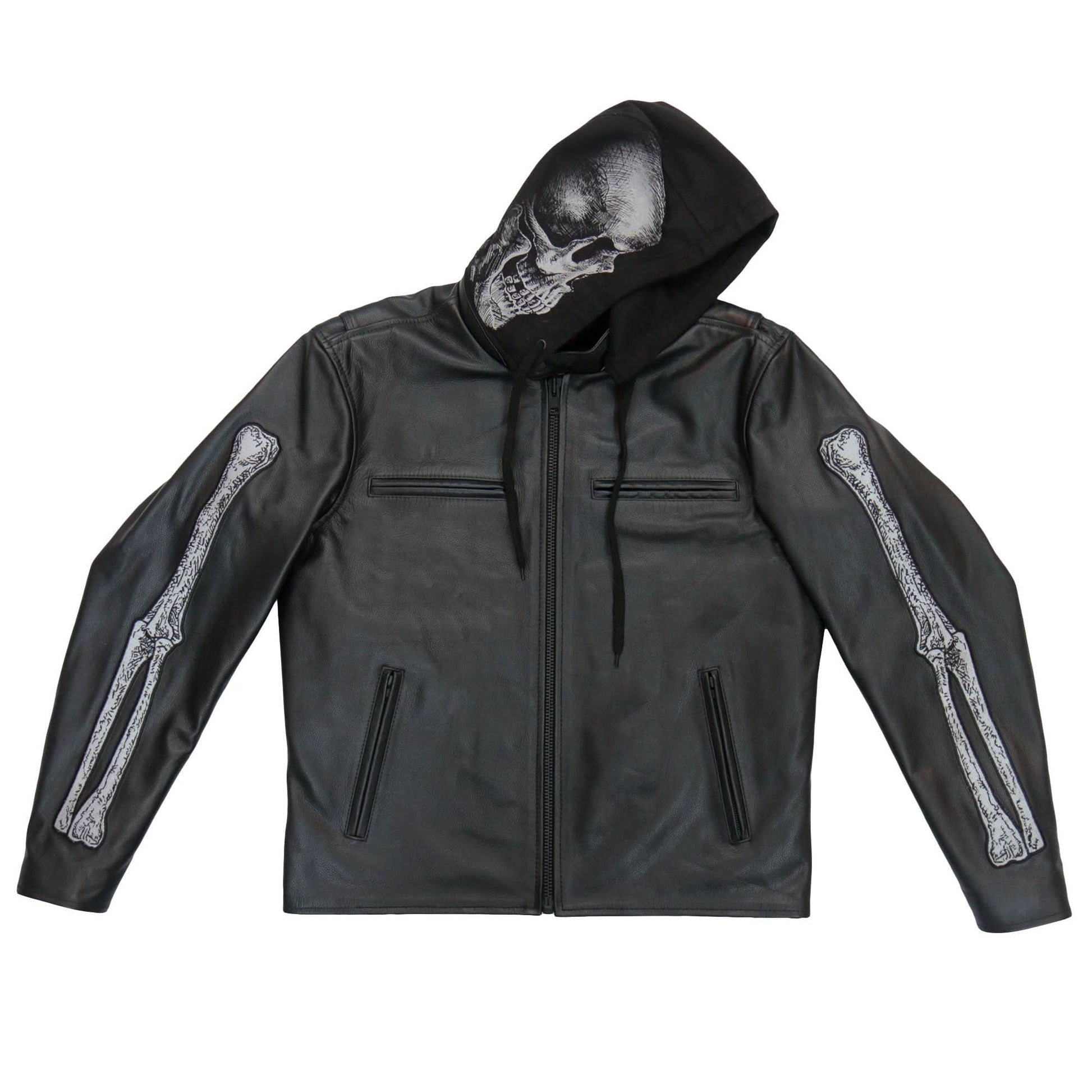 Hot Leathers JKM1031 Men’s Biker ‘Skull and Bones’ Leather Motorcycle Jacket with Flannel Lining