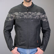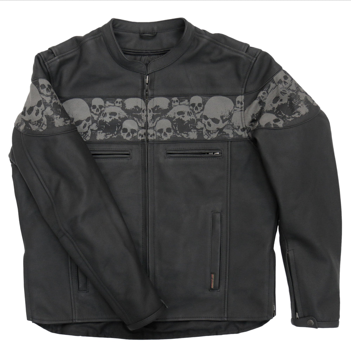 Hot Leathers JKM2002 Men’s Black Biker ‘Reflective Skull' Printed Leather Motorcycle Jacket with Concealed Carry Pockets
