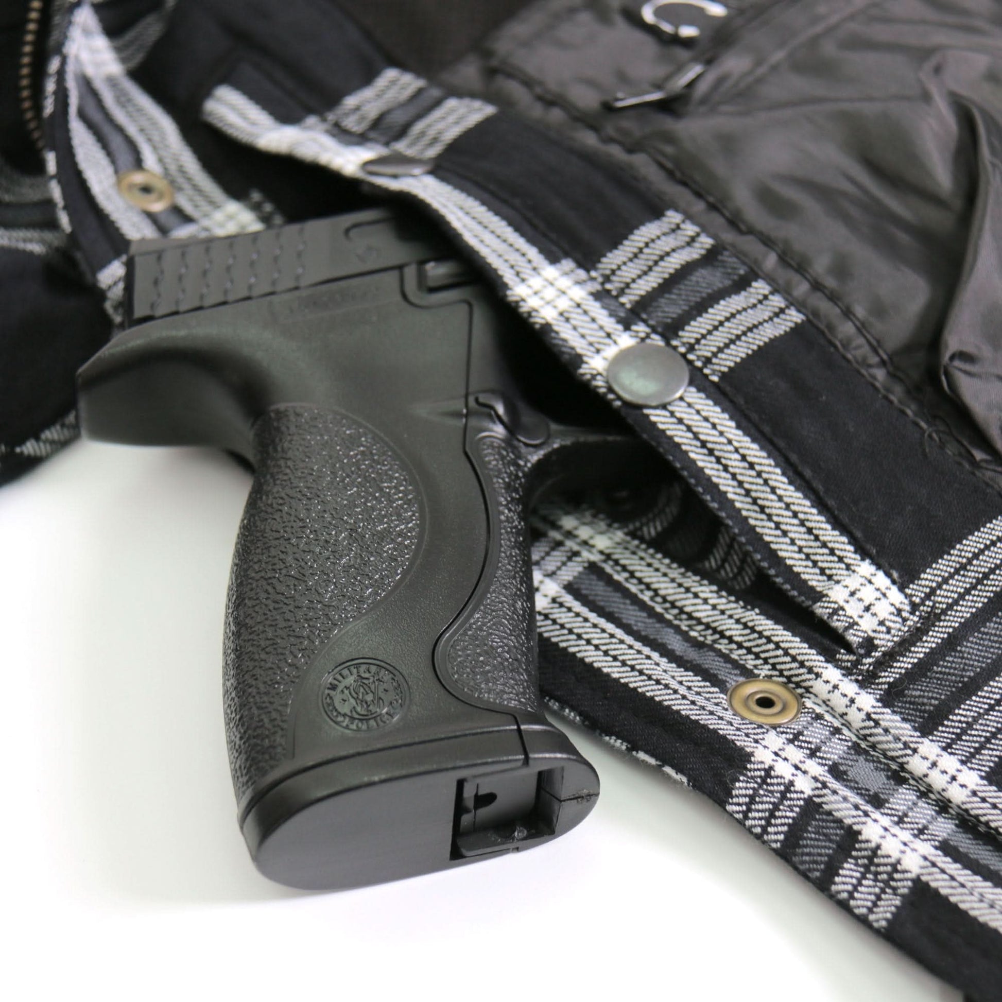 This Hot Leathers armored flannel is made of 100% heavy cotton. It features two inside carry concealed pockets and a zippered media pocket. There is a full zipper and snap front. CE approved removable armor on shoulders and elbows. Another great feature is the underarm zip vents, helps cool you down on those warm days.