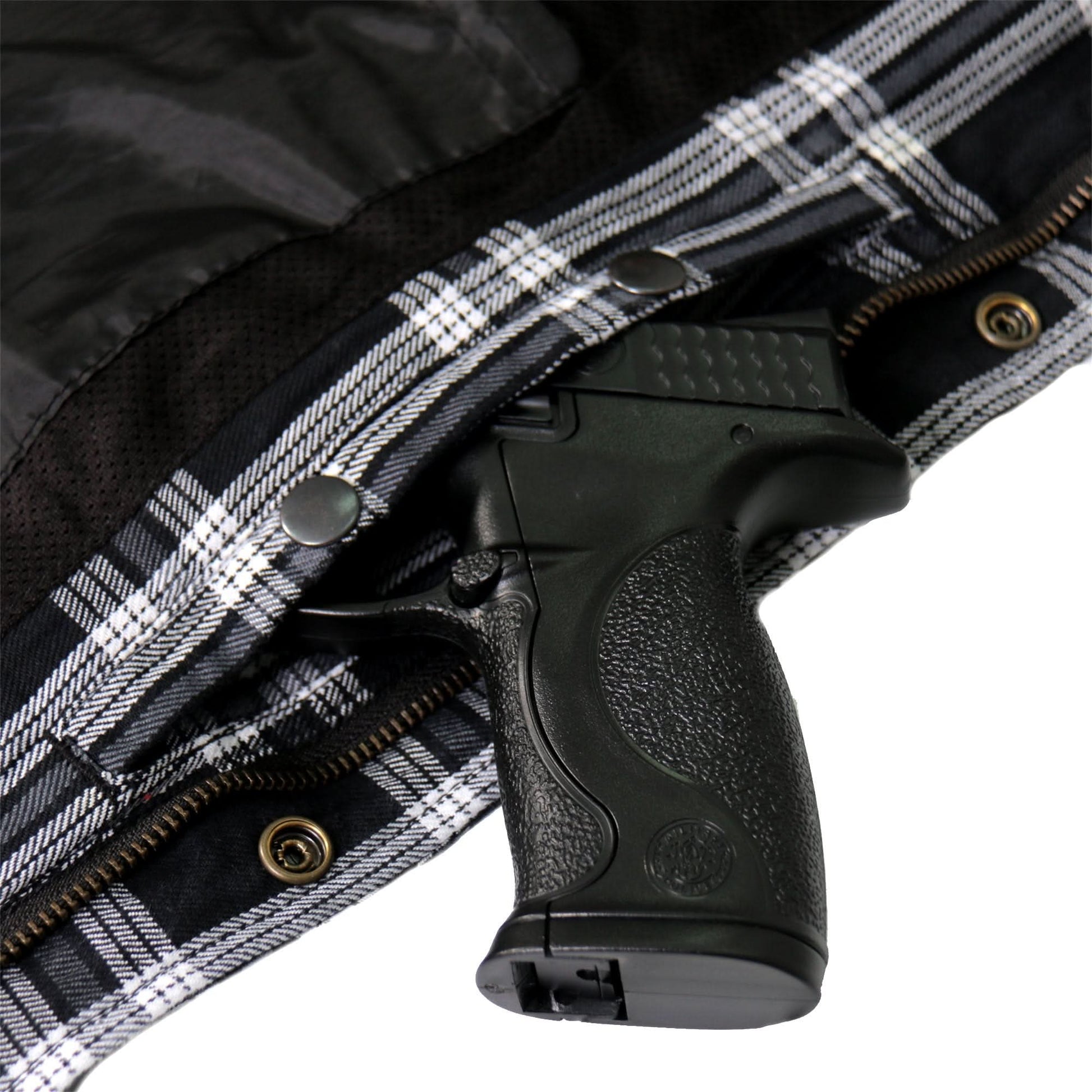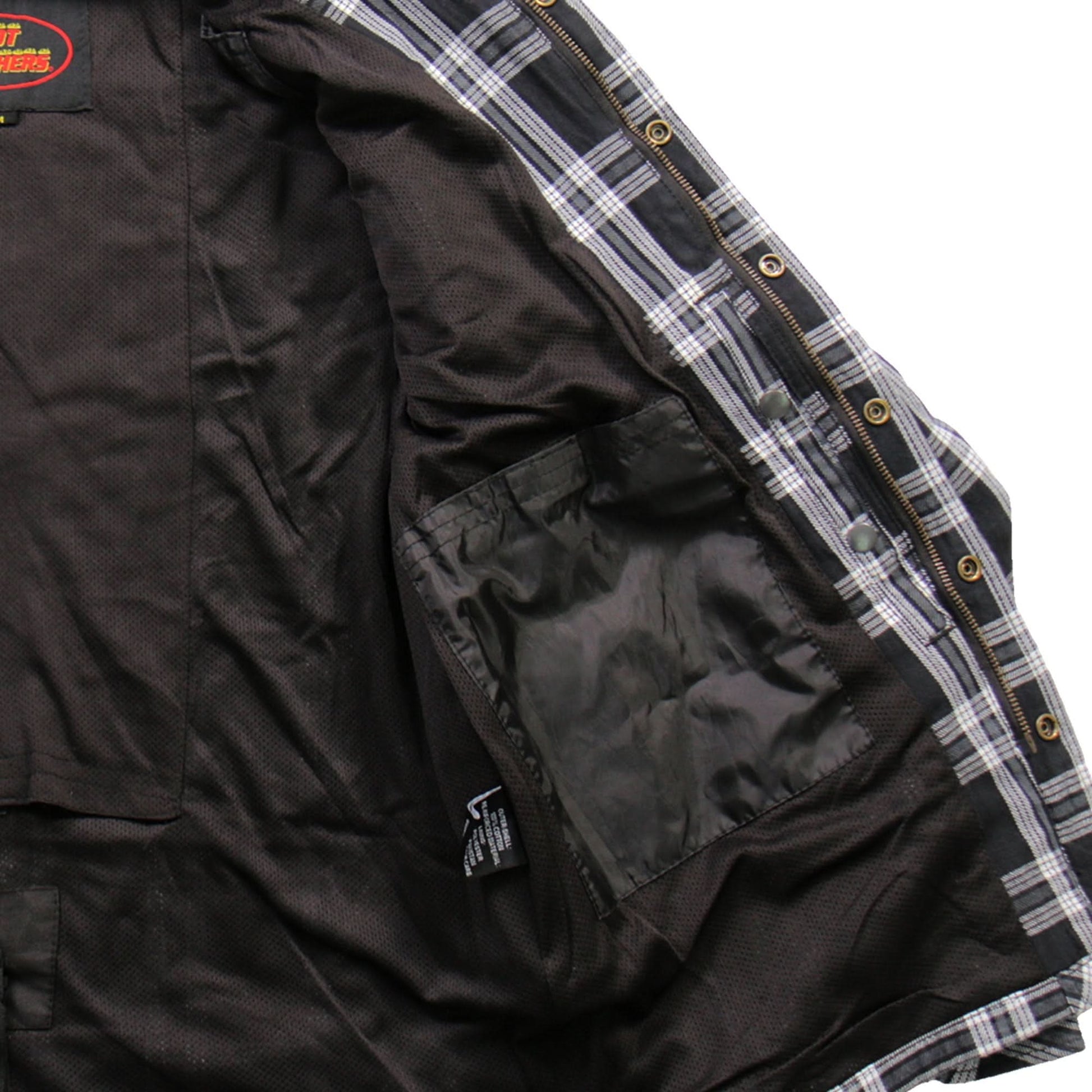 Hot Leathers JKM3002 Men's Motorcycle Black and White Armored Flannel Biker Jacket