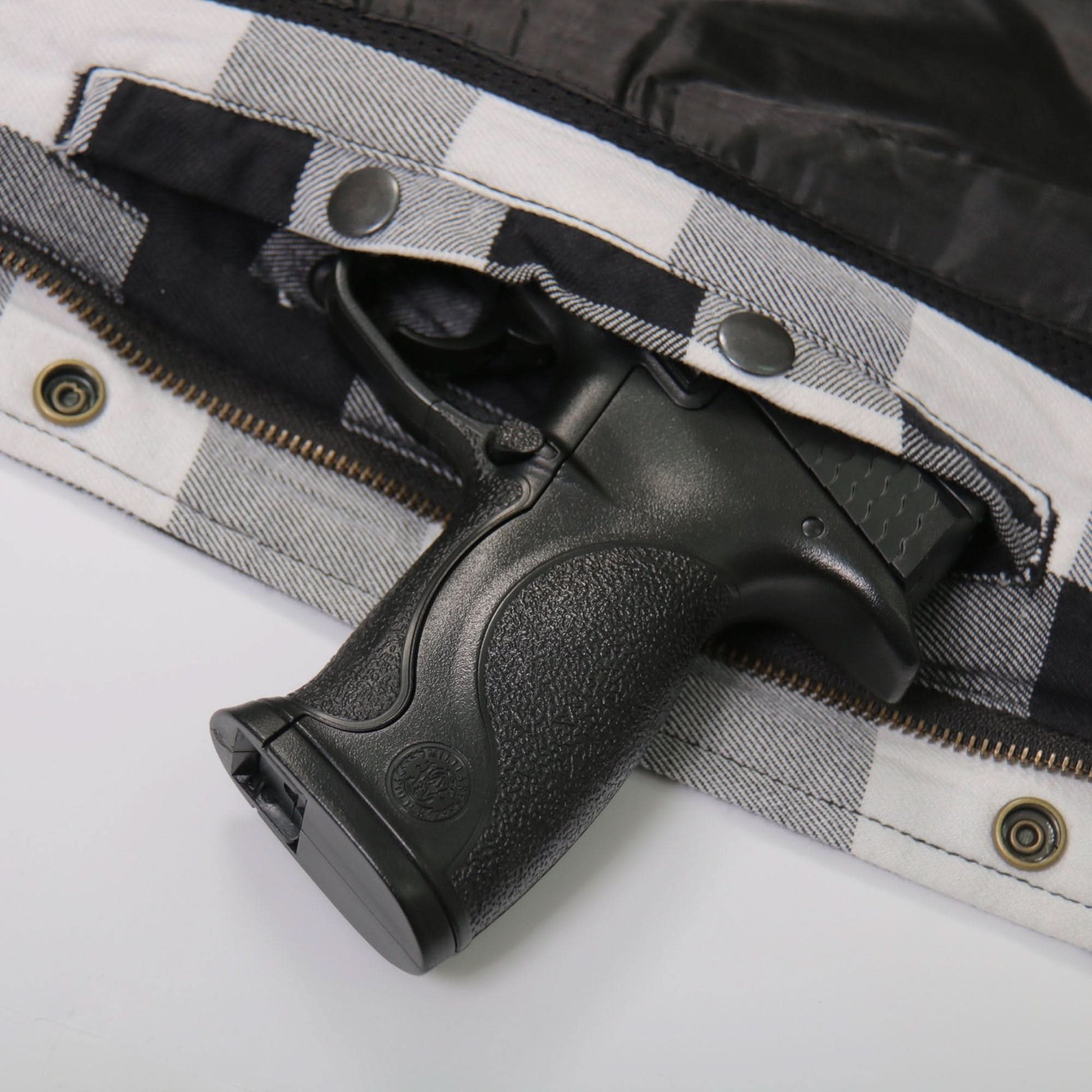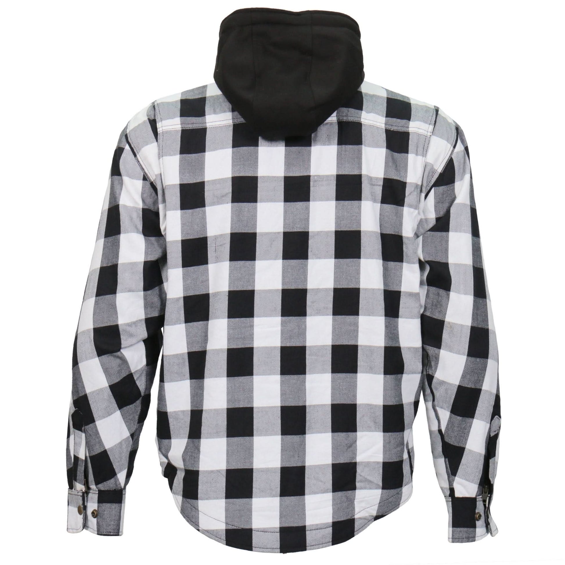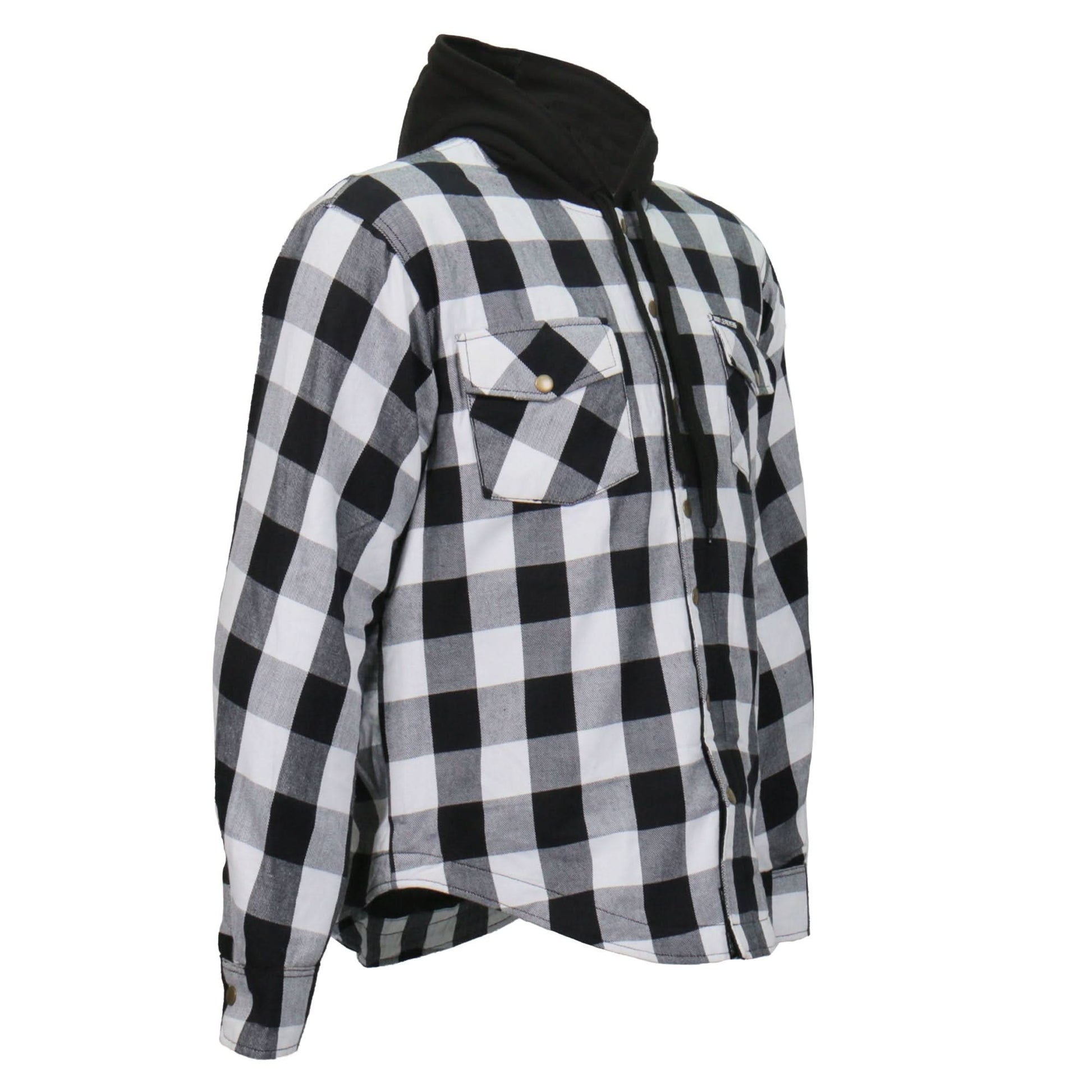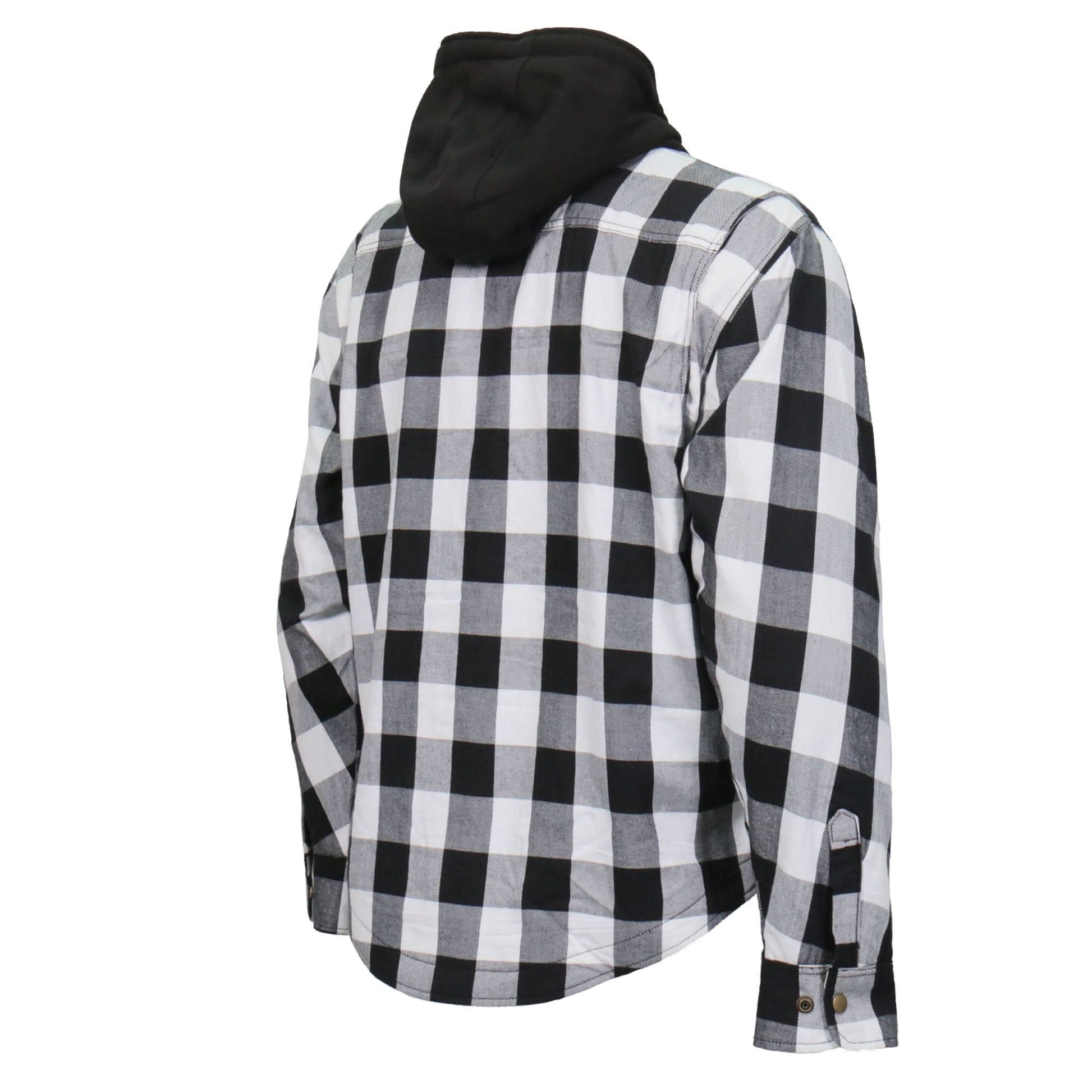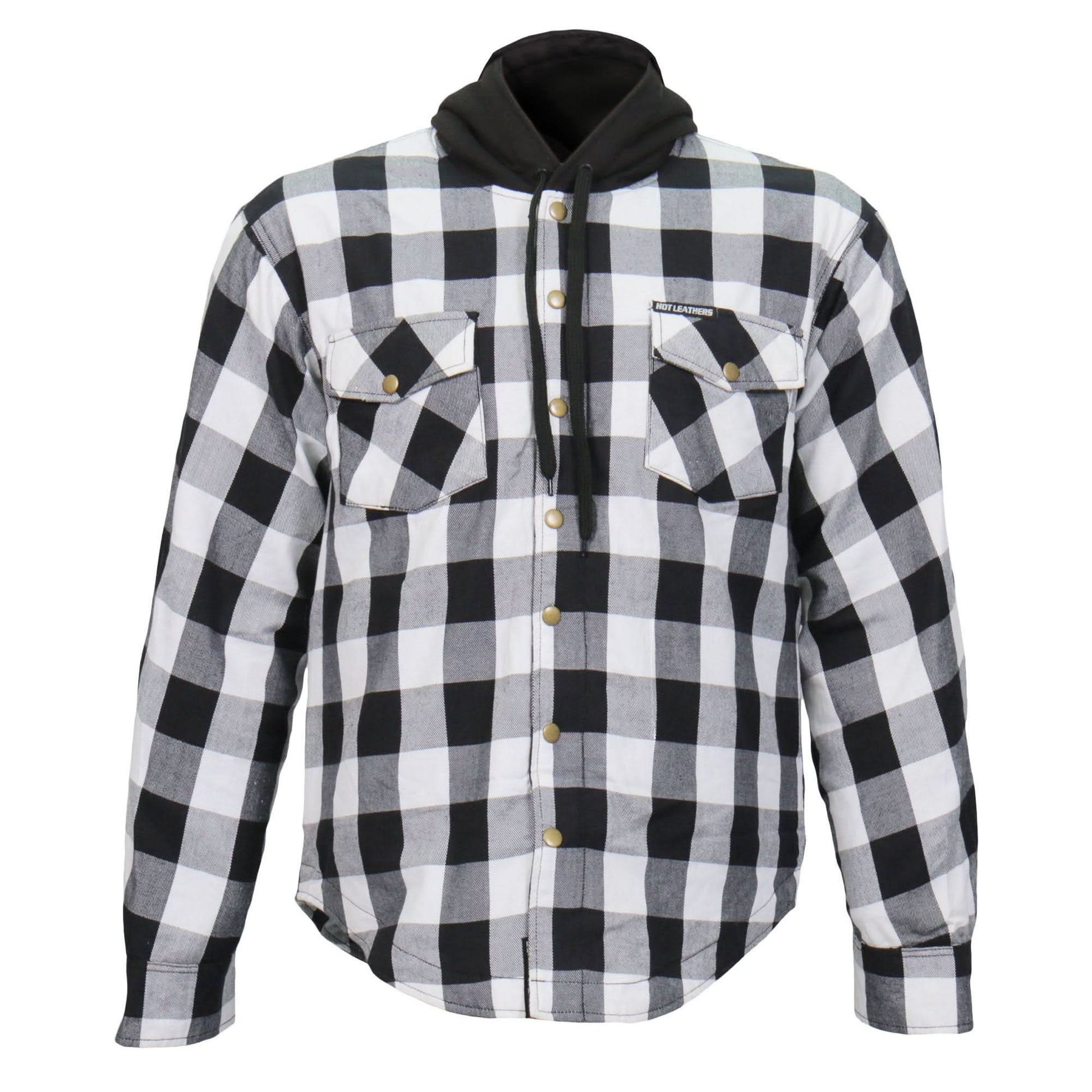 Hot Leathers JKM3006 Men’s Motorcycle Black and White Hooded Armored Flannel Biker Jacket