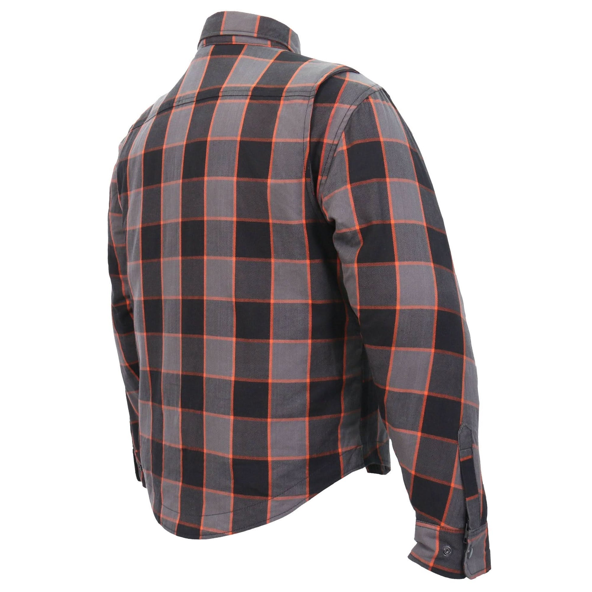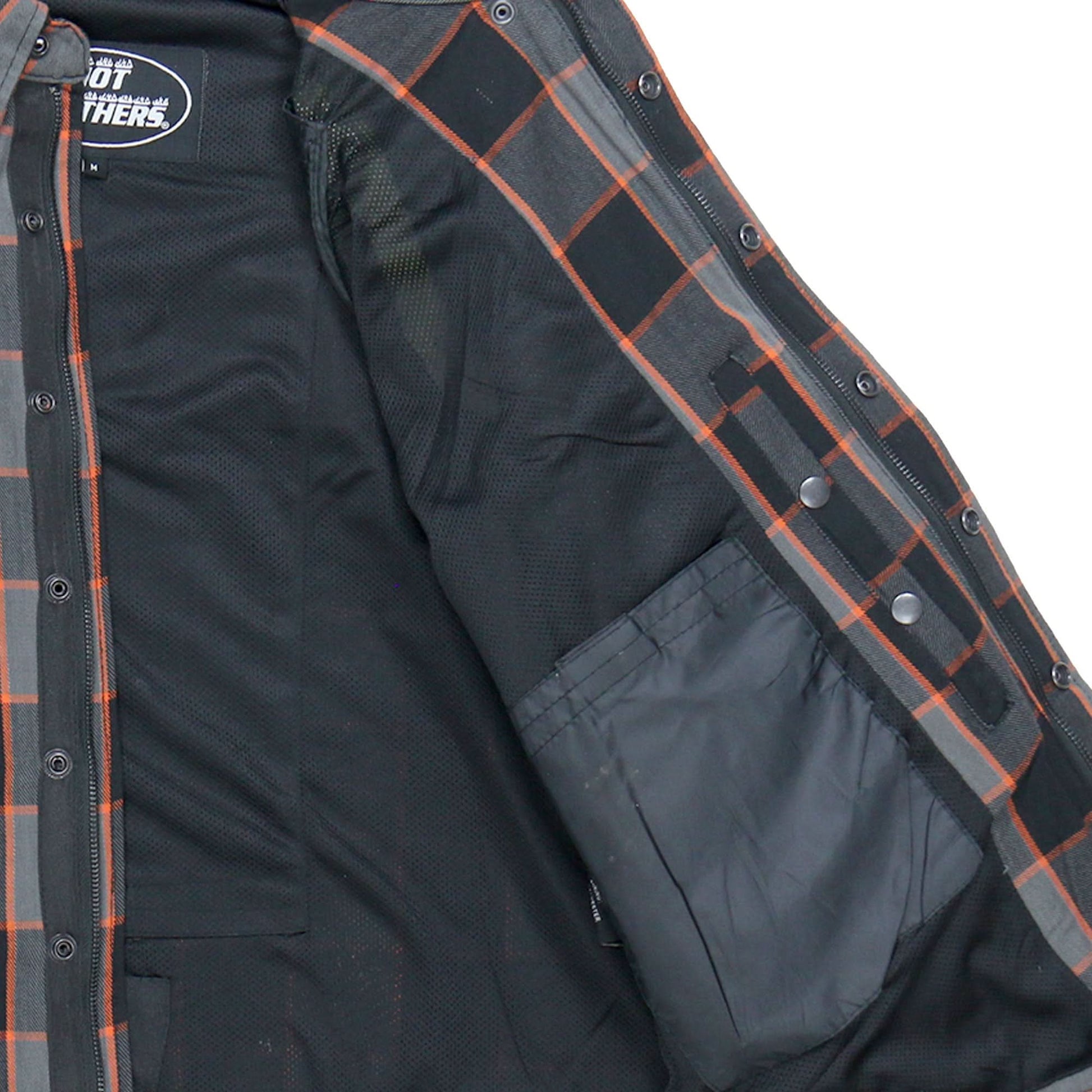 Hot Leathers JKM3010 Men's Black and Grey with Orange Armored Flannel Shirt