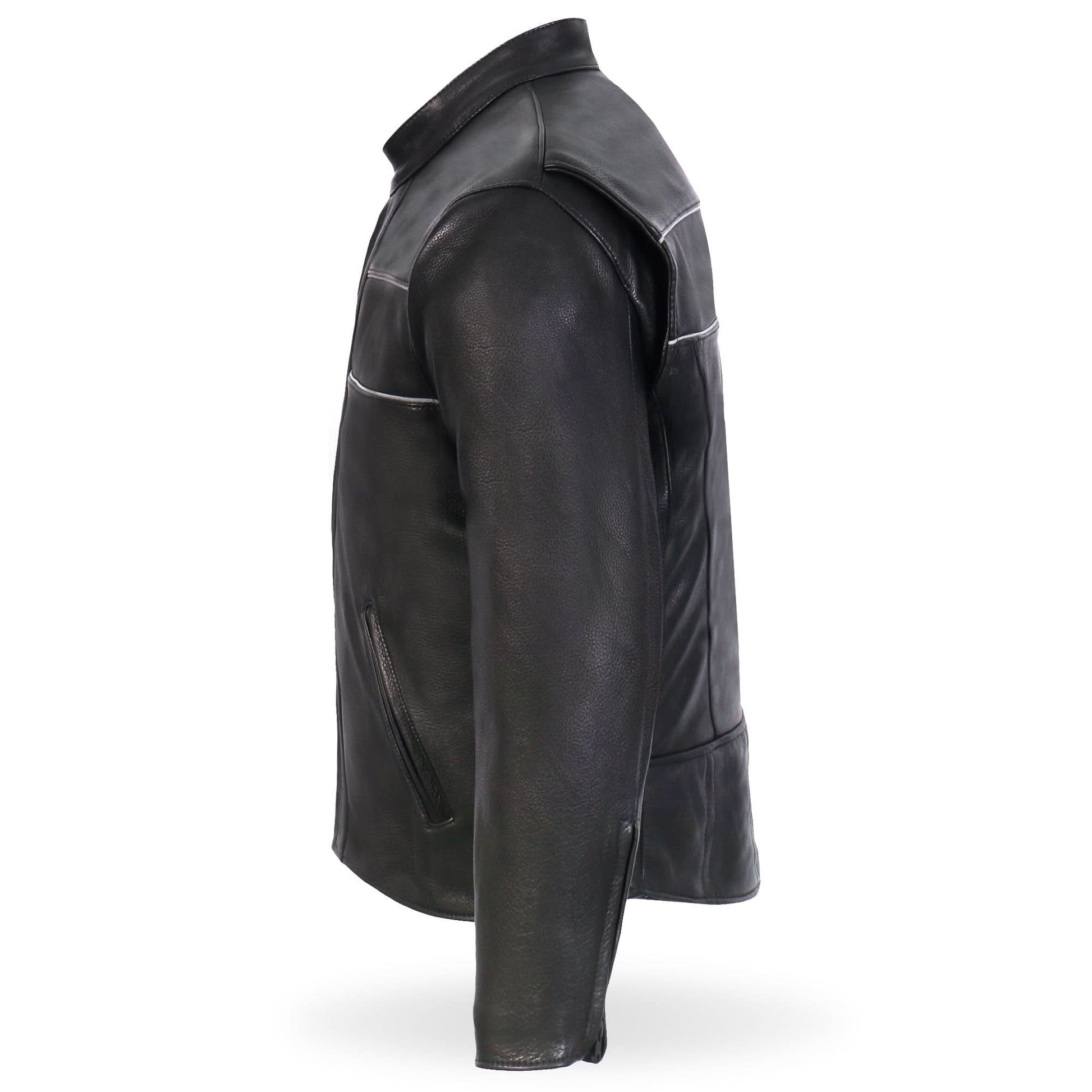Hot Leathers JKM5003 Men’s USA Made Premium Black Leather Motorcycle Biker Jacket with Reflective Piping