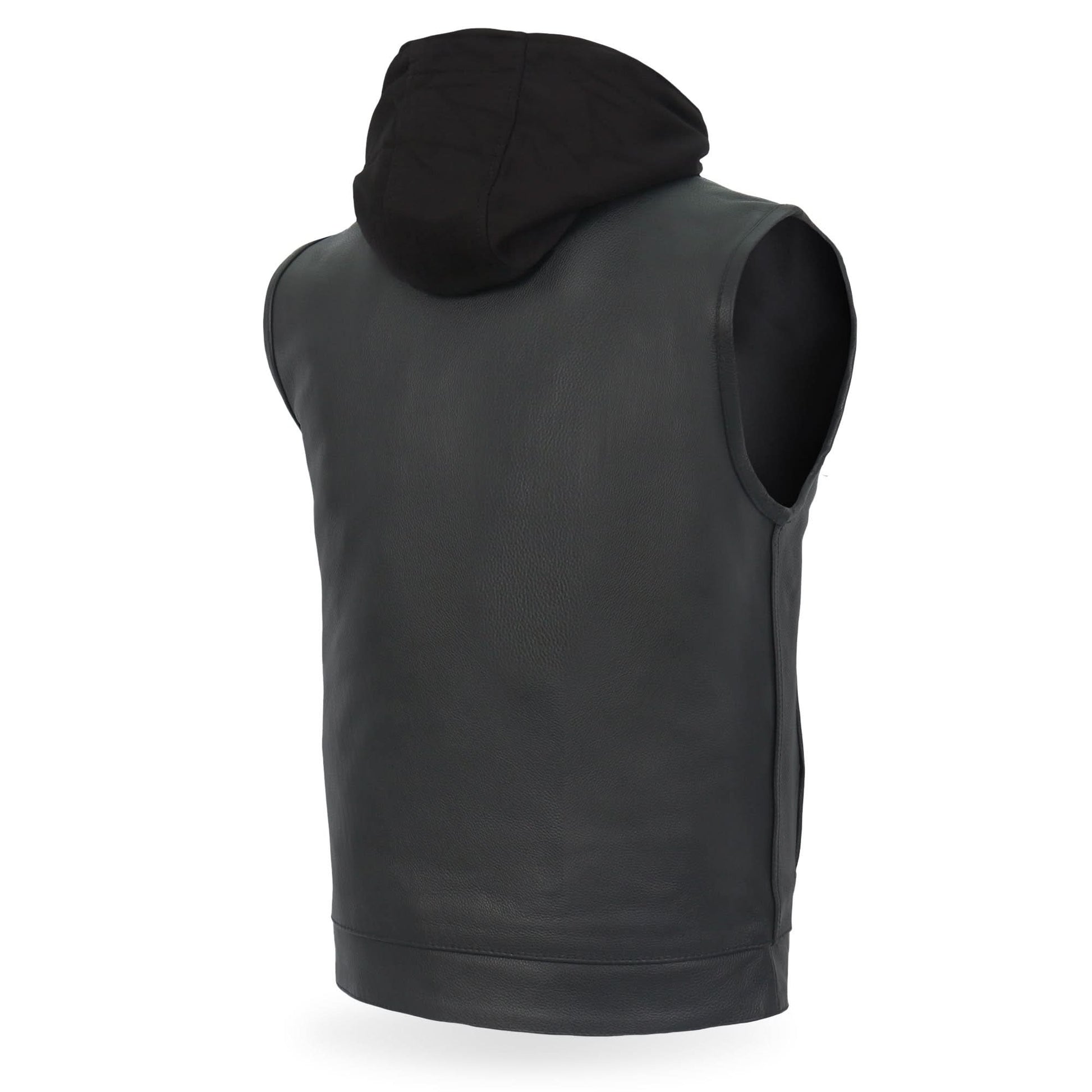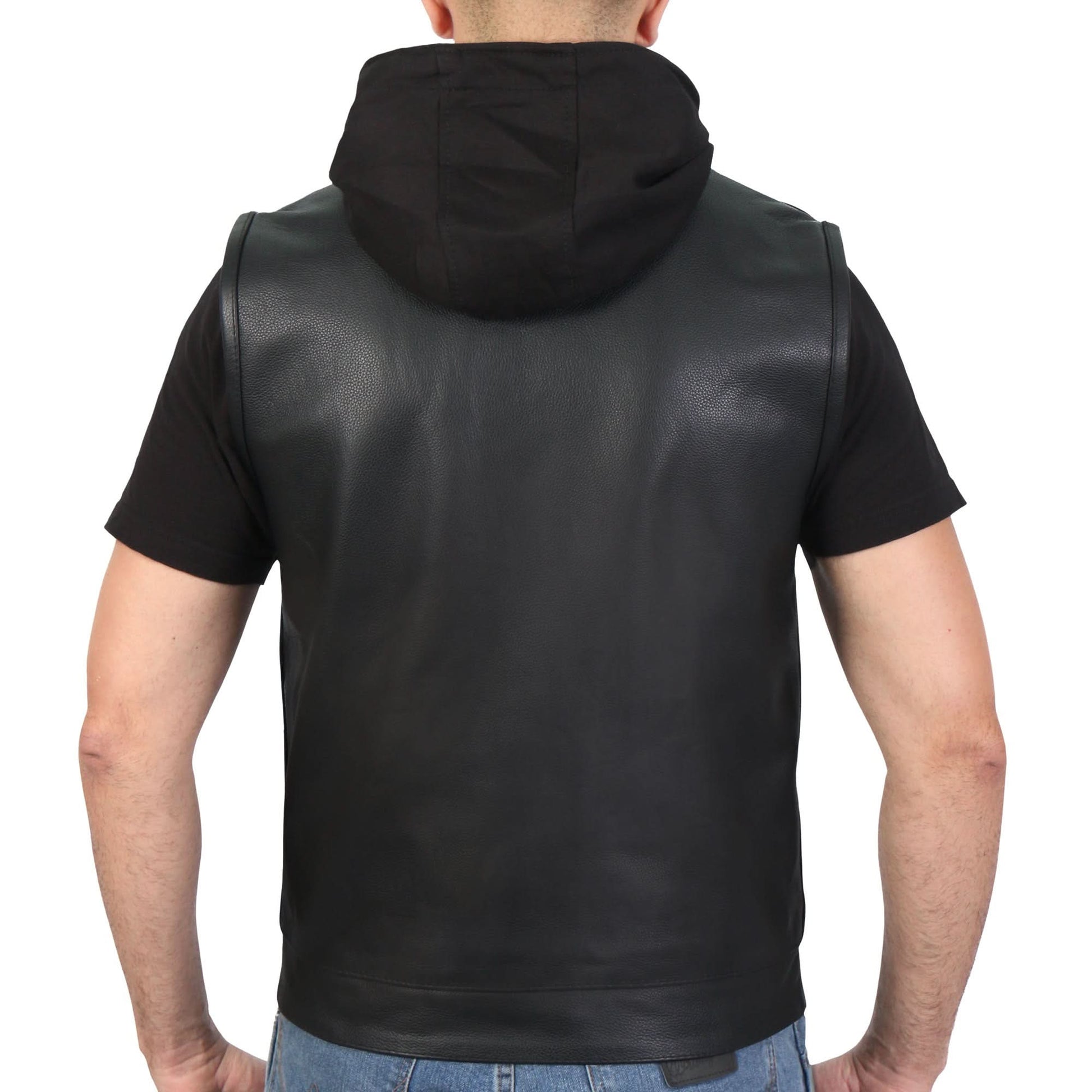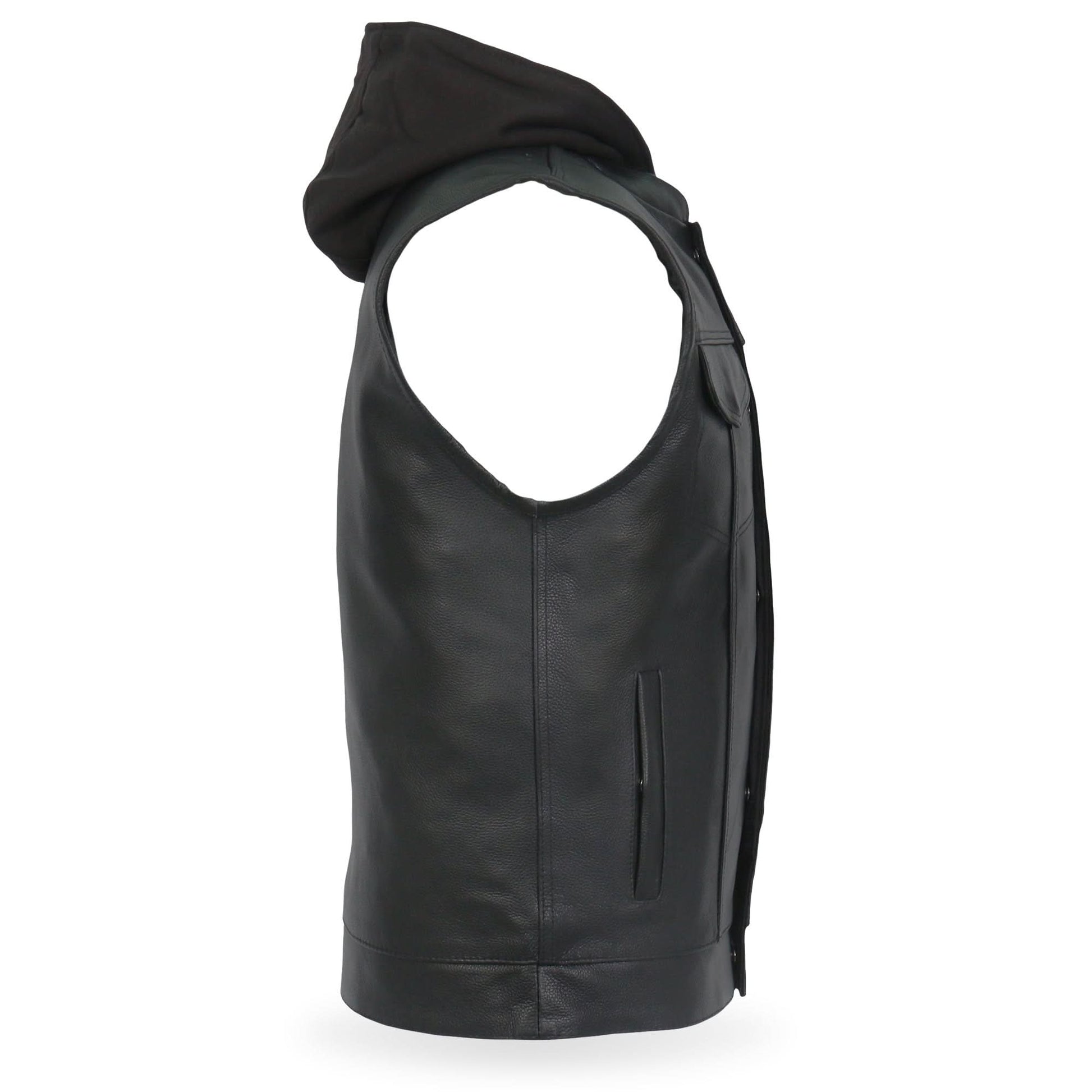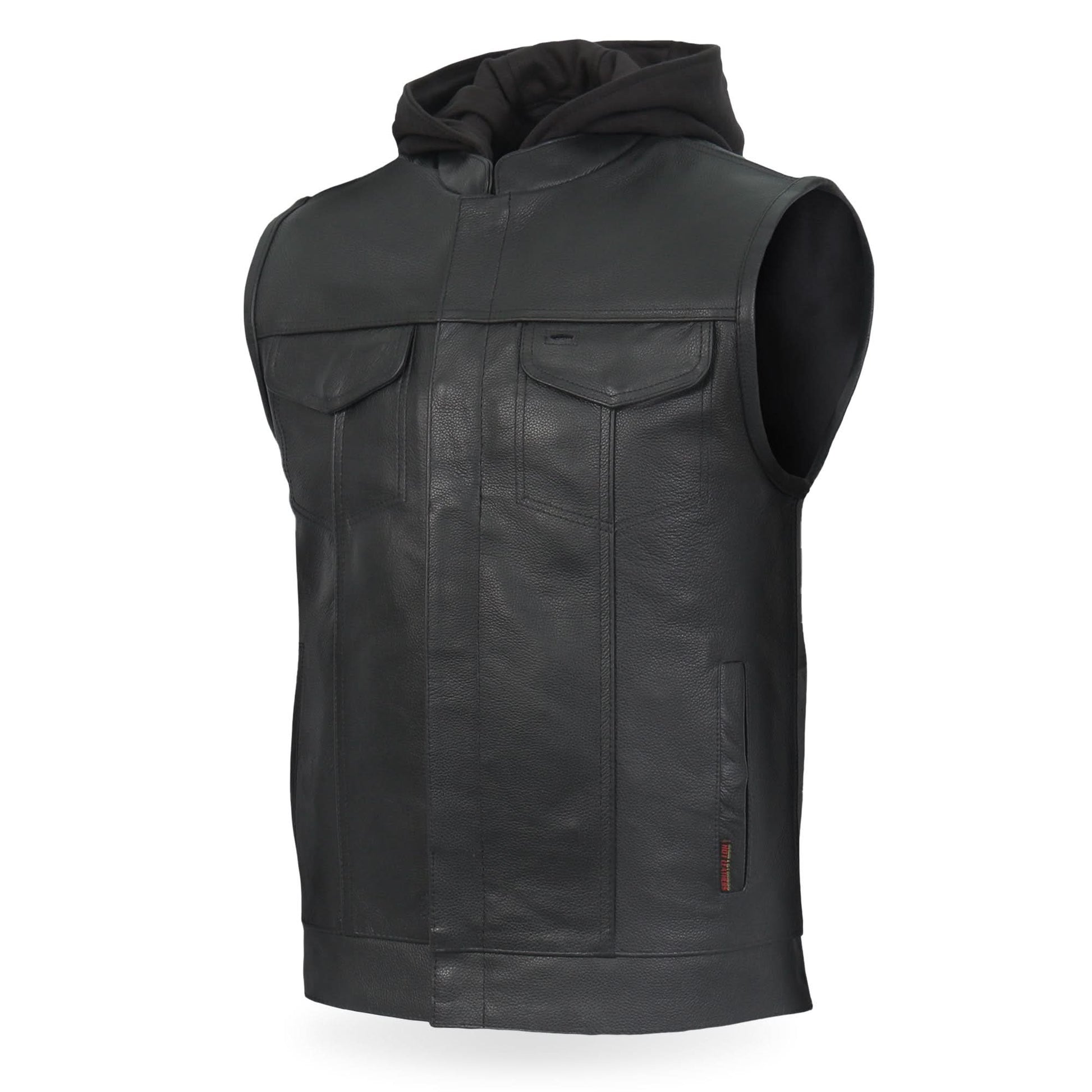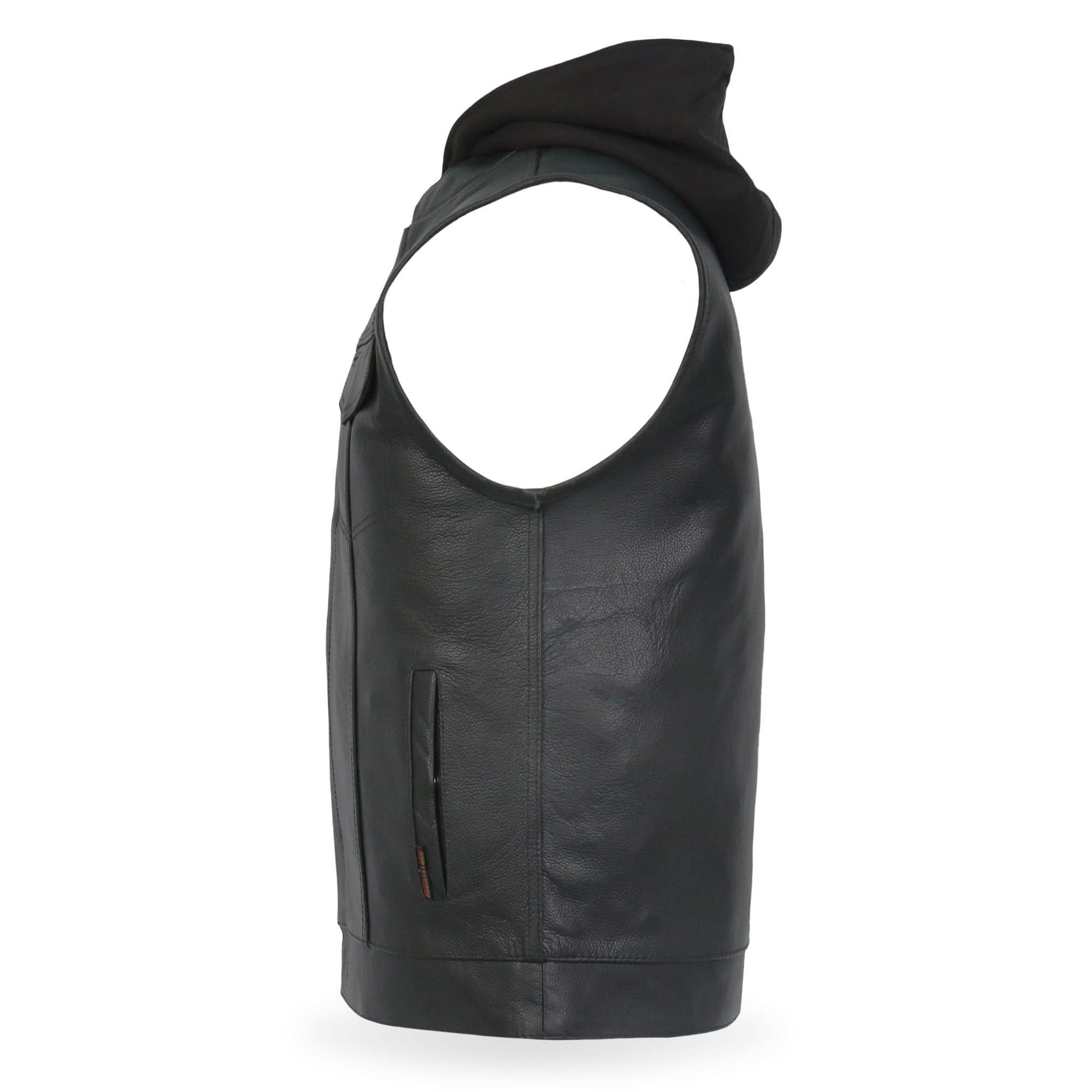 Hot Leathers Leather Motorcycle Biker Club Vest with Hood