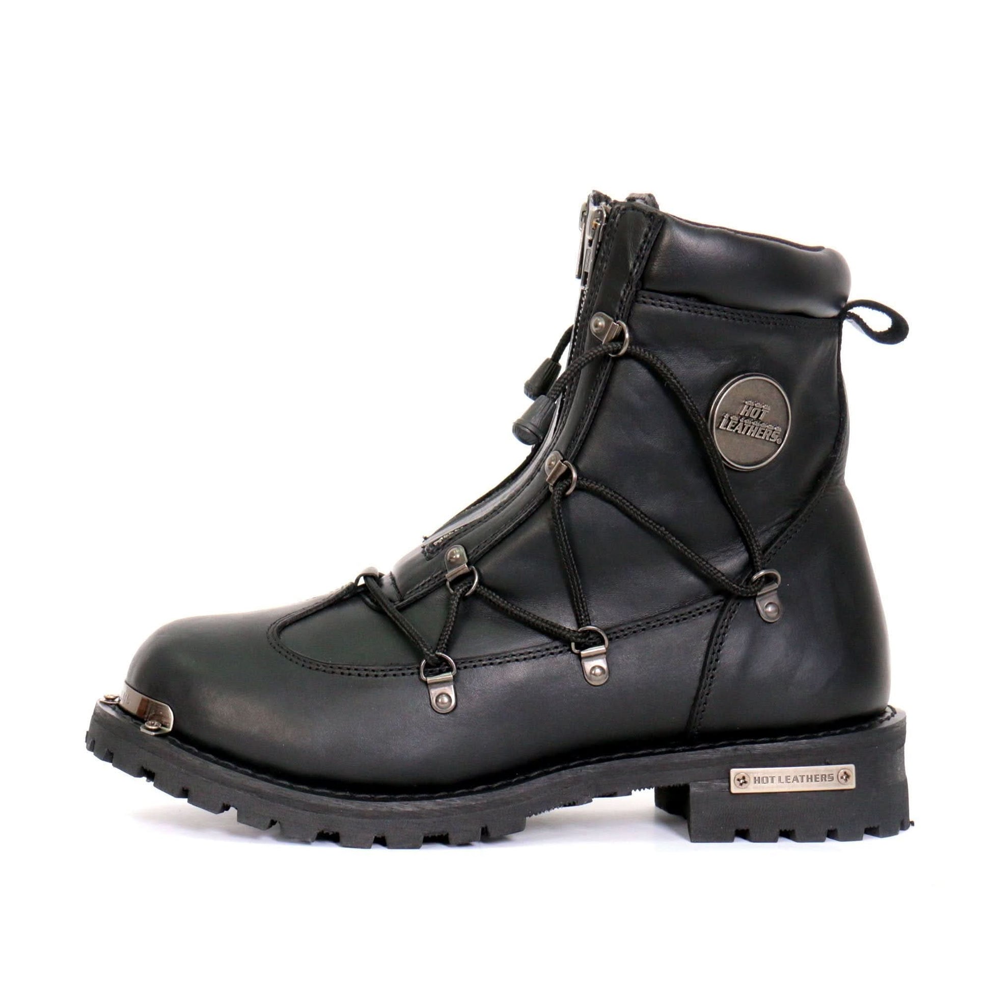 Hot Leathers Men's Black 7-Inch Leather Lace Up Boots with Zipper Closure BTM1009